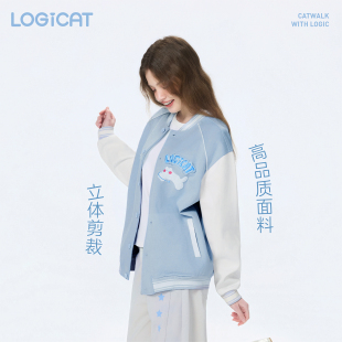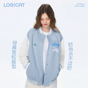 刺绣针织上衣外套 潮流男女情侣装 LOGICAT棒球服宽松百搭时尚 美式