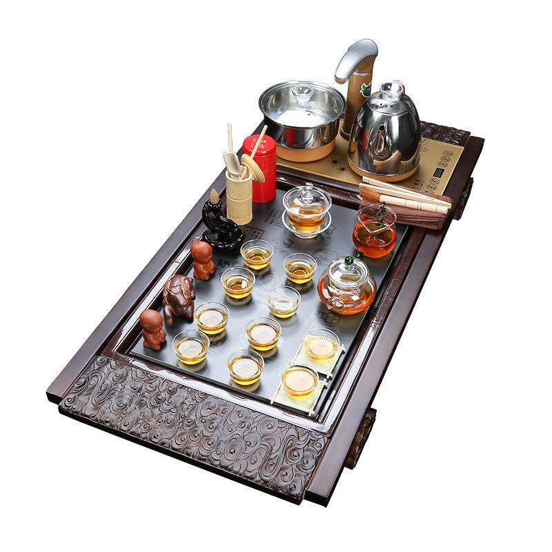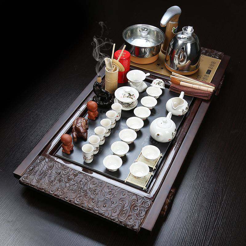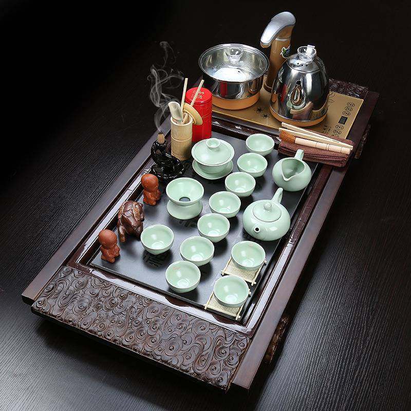 整套家用客厅紫砂功夫陶瓷茶具套装 实木茶盘茶具祥云万福茶盘套装
