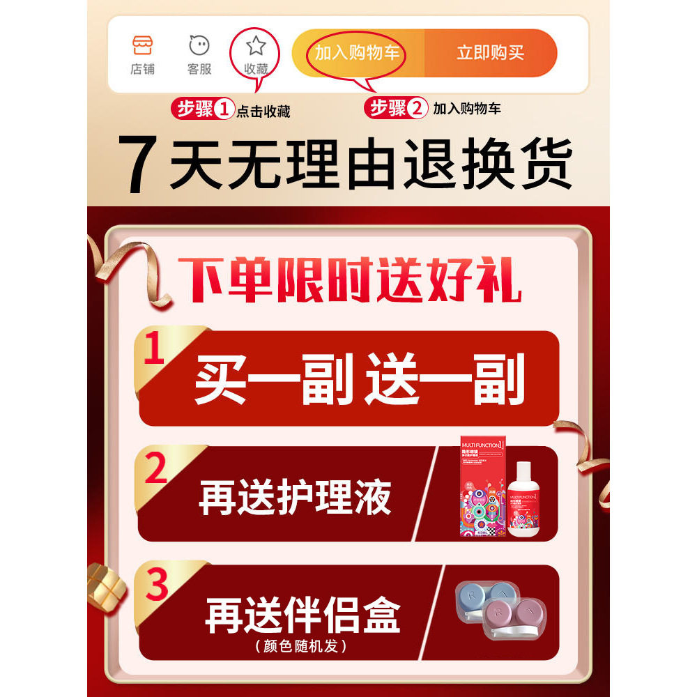 三明治工艺好运卡美瞳半年抛黑色大直径自然纯欲近视隐形眼镜7st