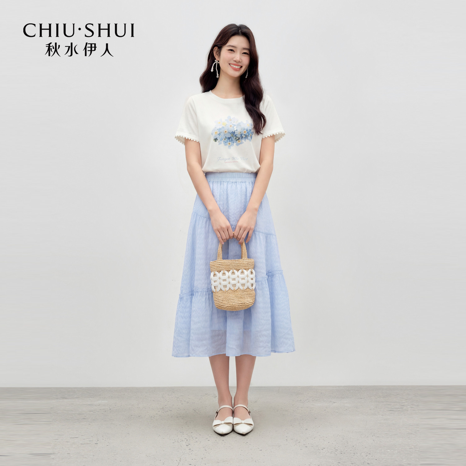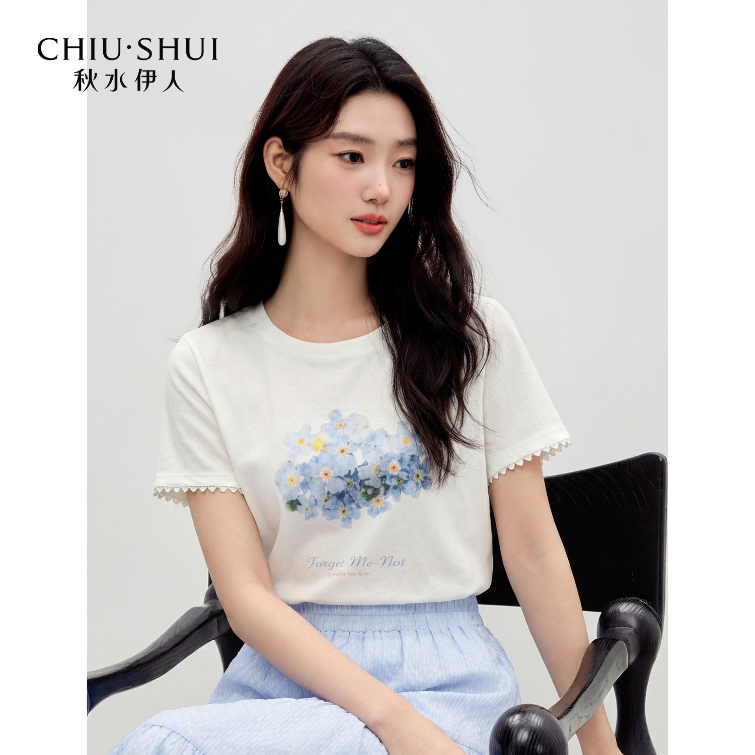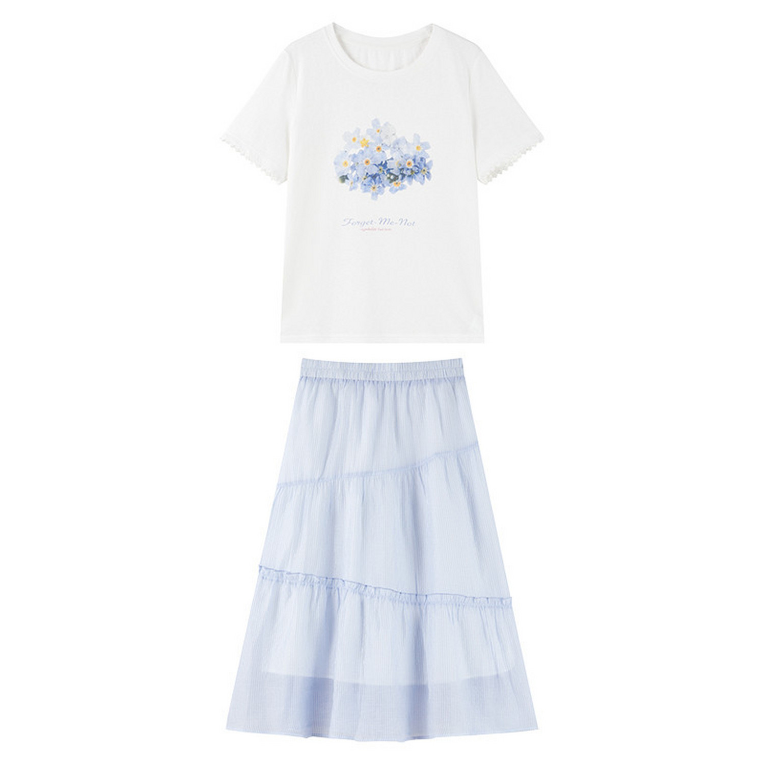 T恤套装 女装 裙 新款 宽松半裙两件套 2026夏季 秋水伊人圆领印花短袖