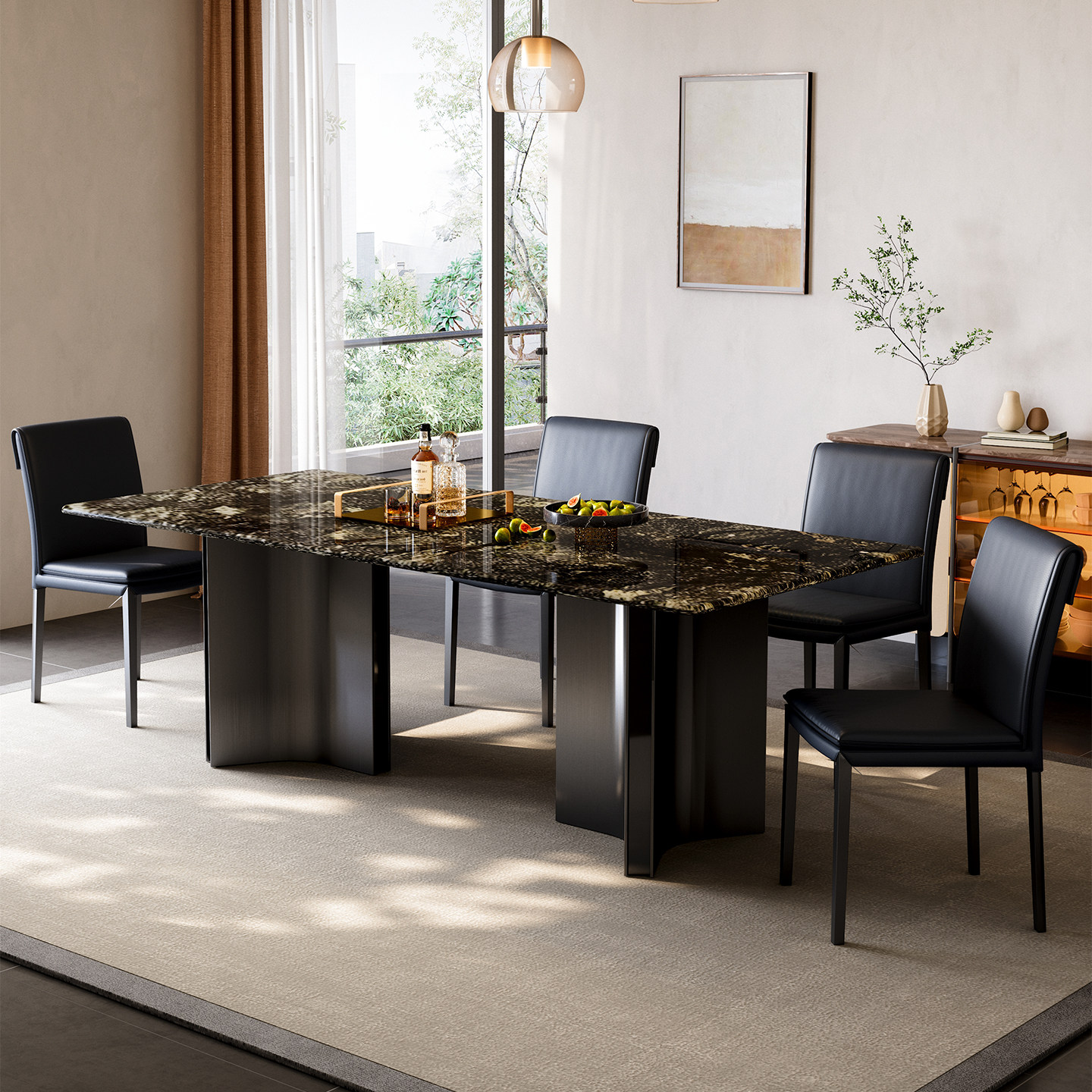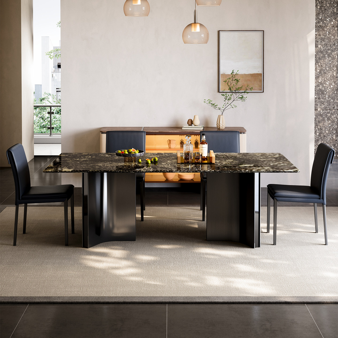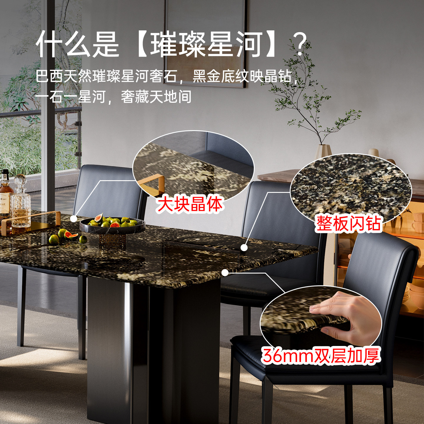 天然奢石餐桌璀璨星河奢石餐桌天然大理石意式 餐桌大平层高端餐桌