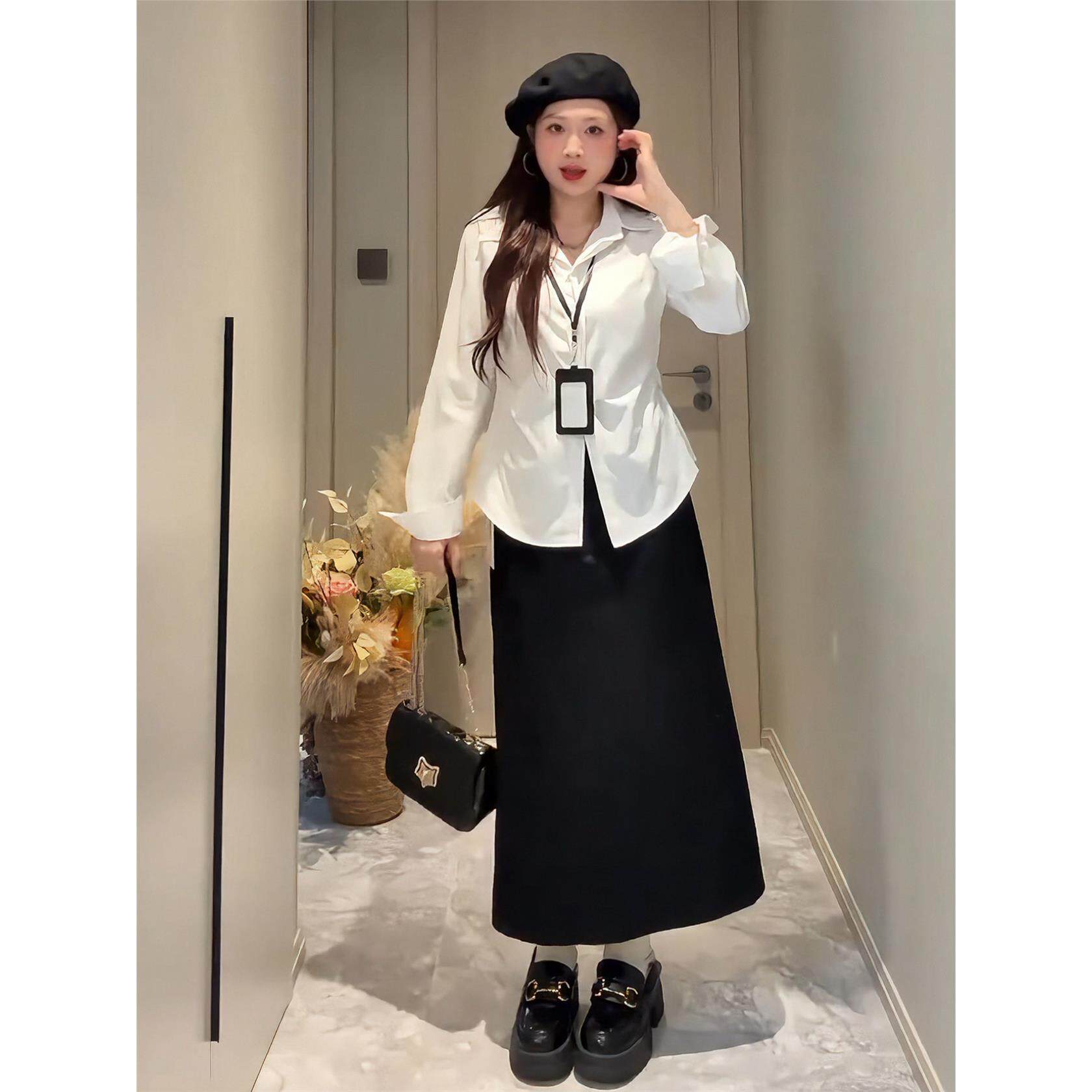 设计感显瘦衬衣秋季 大码 女装 衬衫 上衣 胖mm韩系正肩POLO领收腰长袖