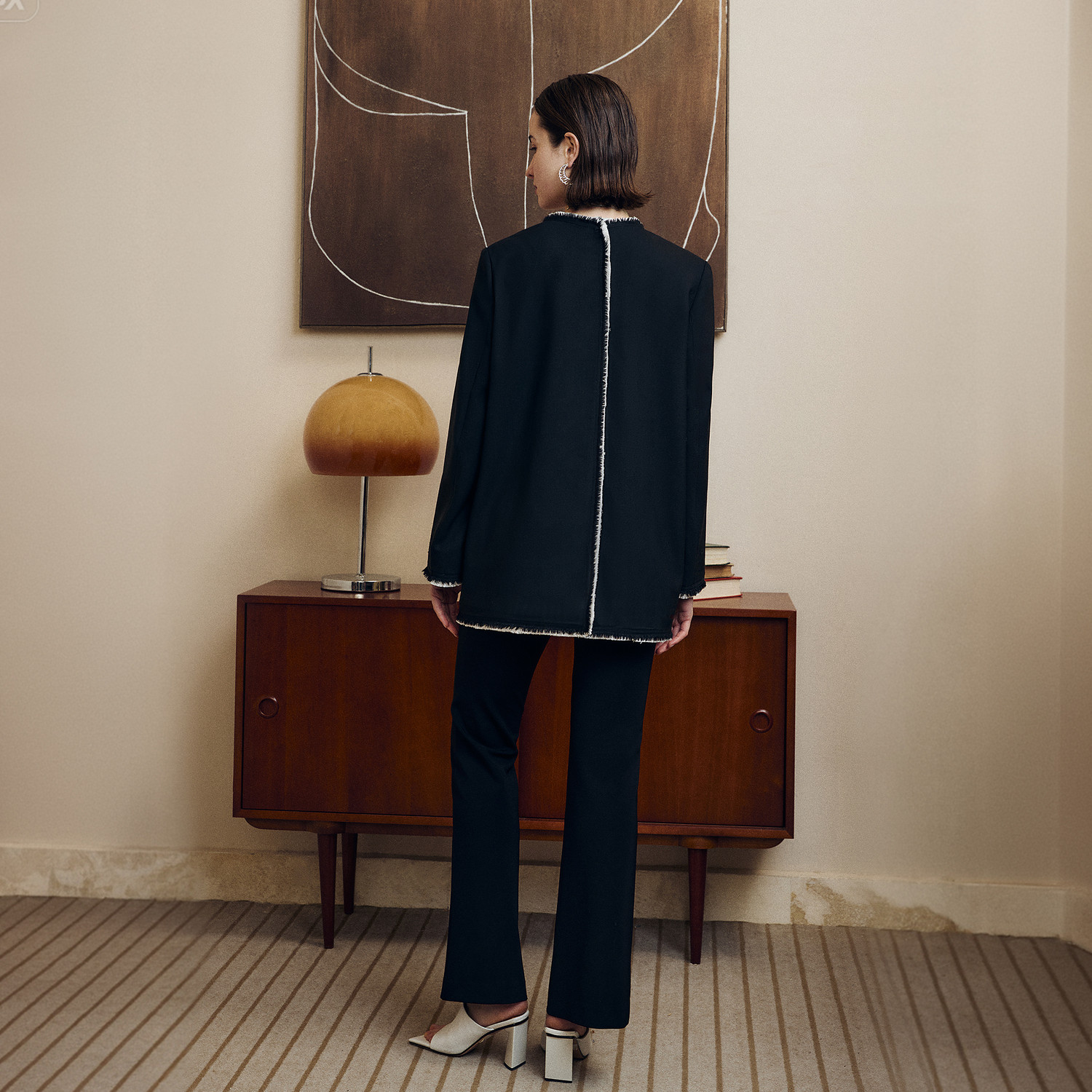 外套2026春夏新款 羊毛拉毛无领西装 无扣宽肩气质通勤上衣 溯影