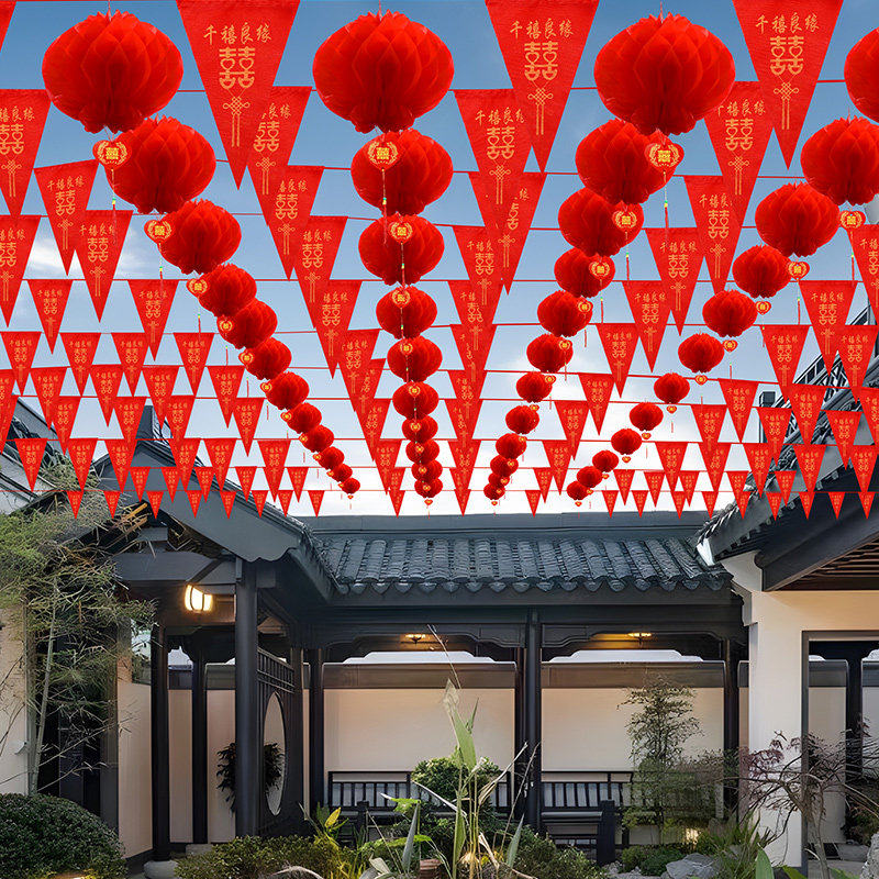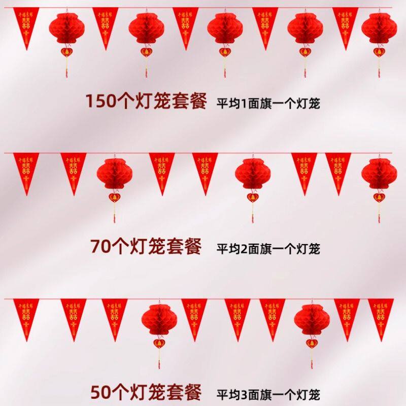 婚庆彩旗院子装 饰拉花喜字农村灯笼婚礼风车婚房布置室外结婚氛围