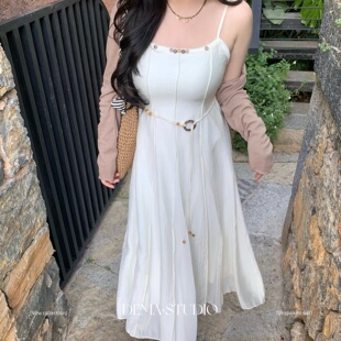 DEMA小德玛杏色吊带连衣裙女春夏2026新款 温柔风收腰显瘦长裙度假