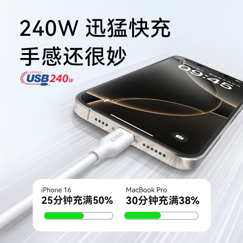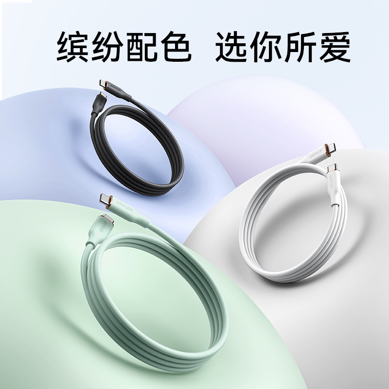 Anker安克适配苹果17充电线手机iPhone16数据线15promax快充线双typec充电器线PD快充240W液态硅胶线iPad电脑