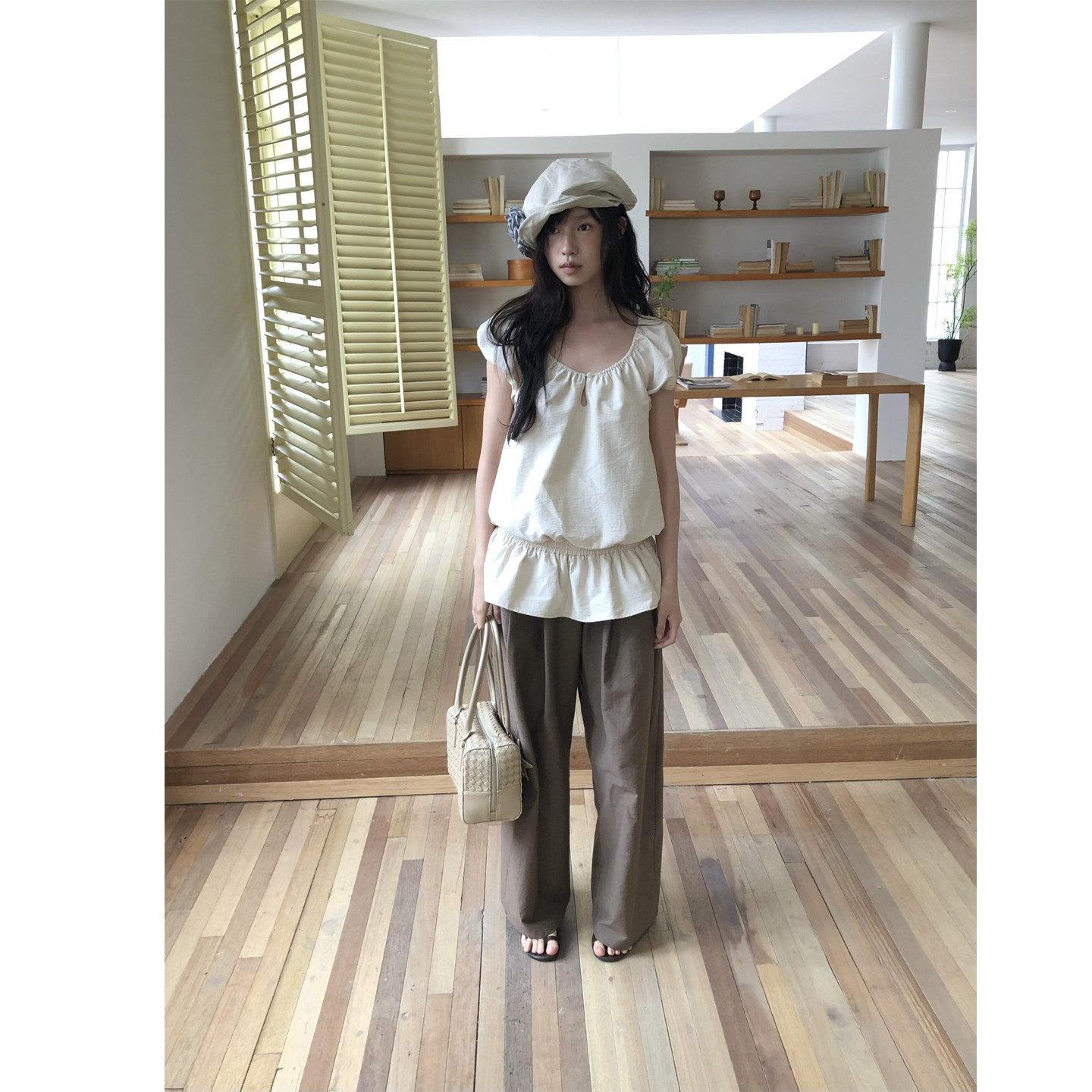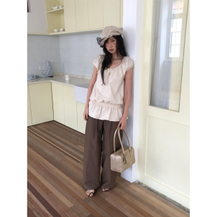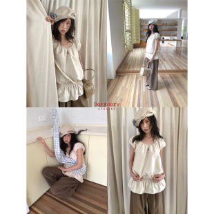 设计感小众短袖 90%棉宽松显瘦2026新款 衬衫 dorydory复古花苞袖