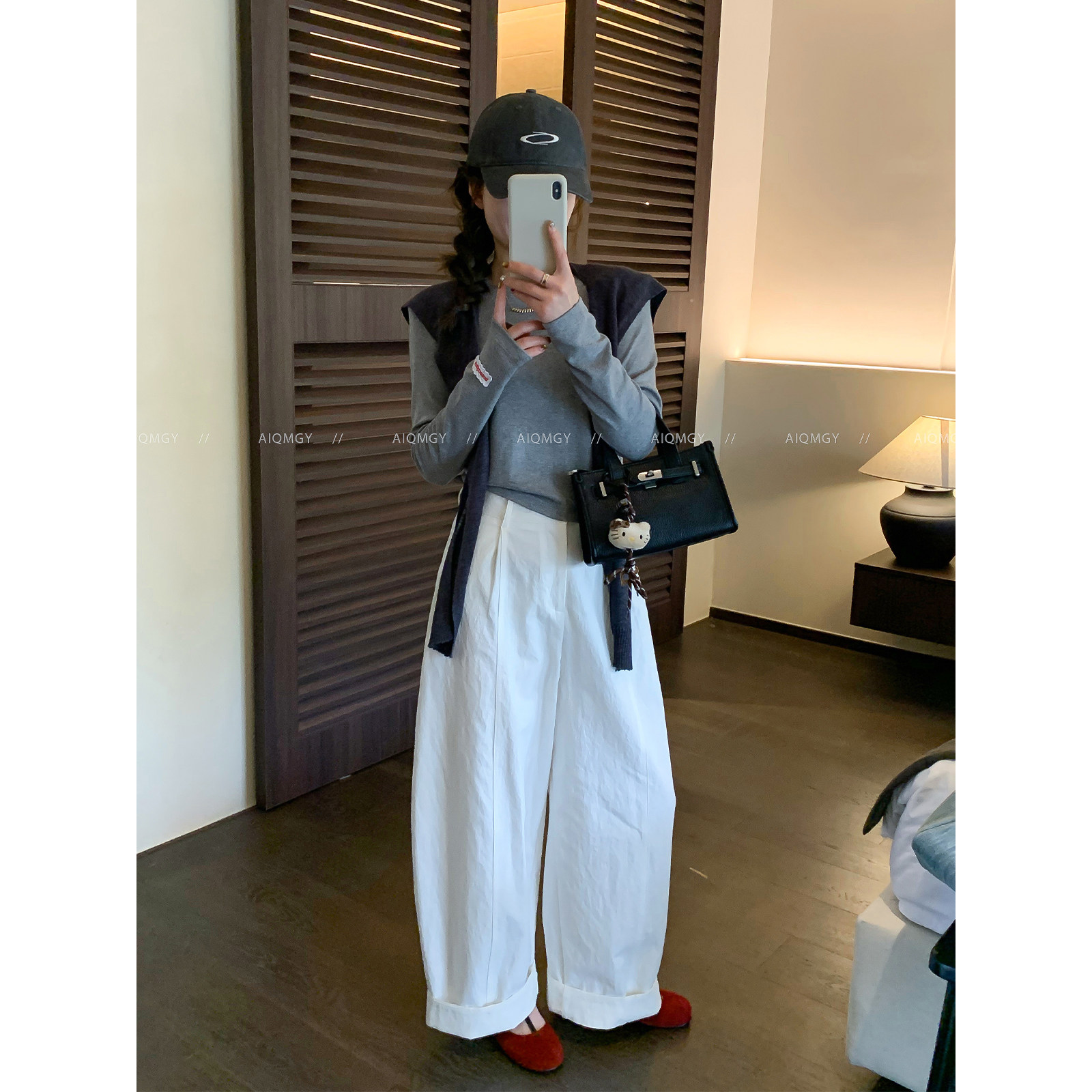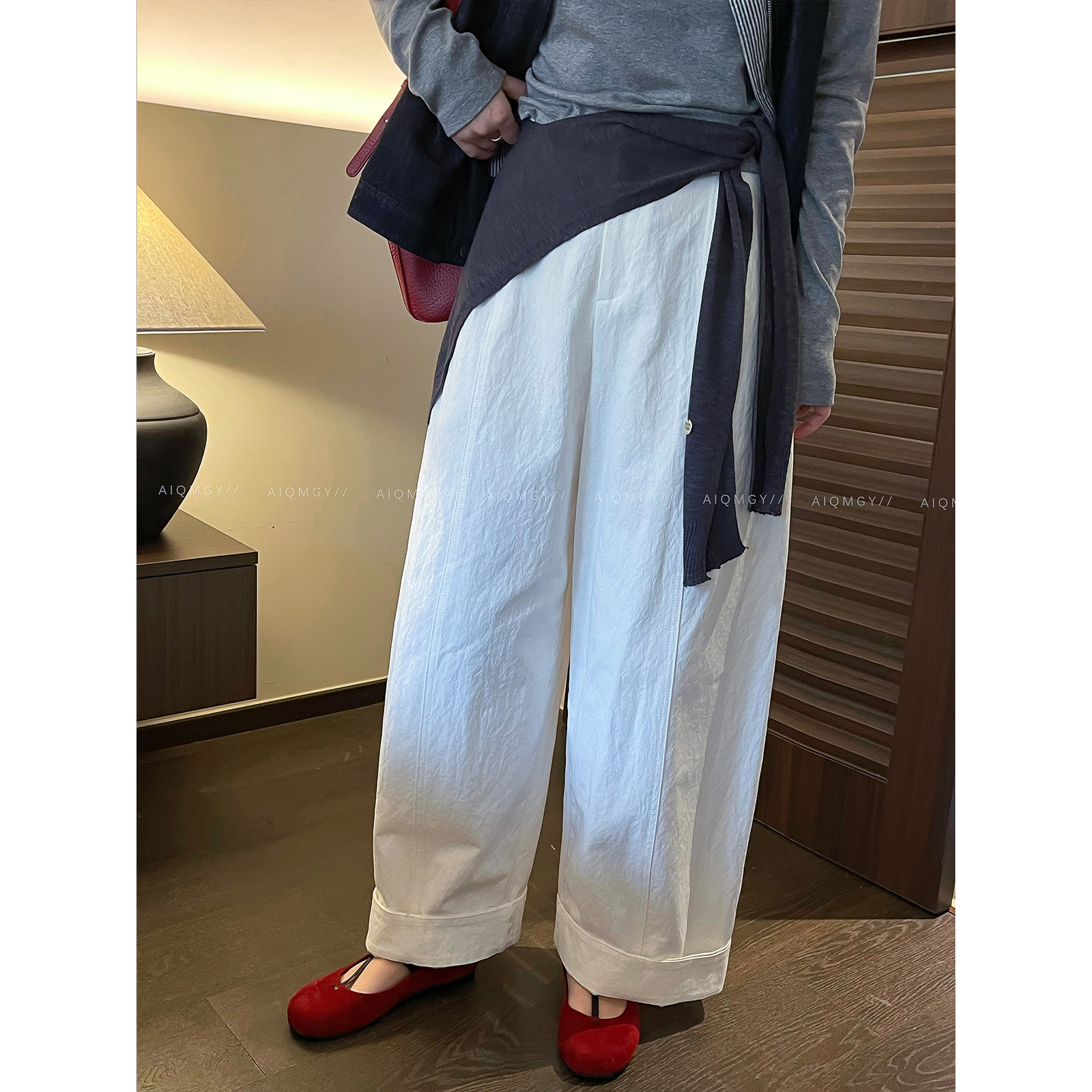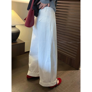 高腰宽松拖地长裤 爱情魔鬼鱼 新款 女2026春季 白色卷边休闲阔腿裤