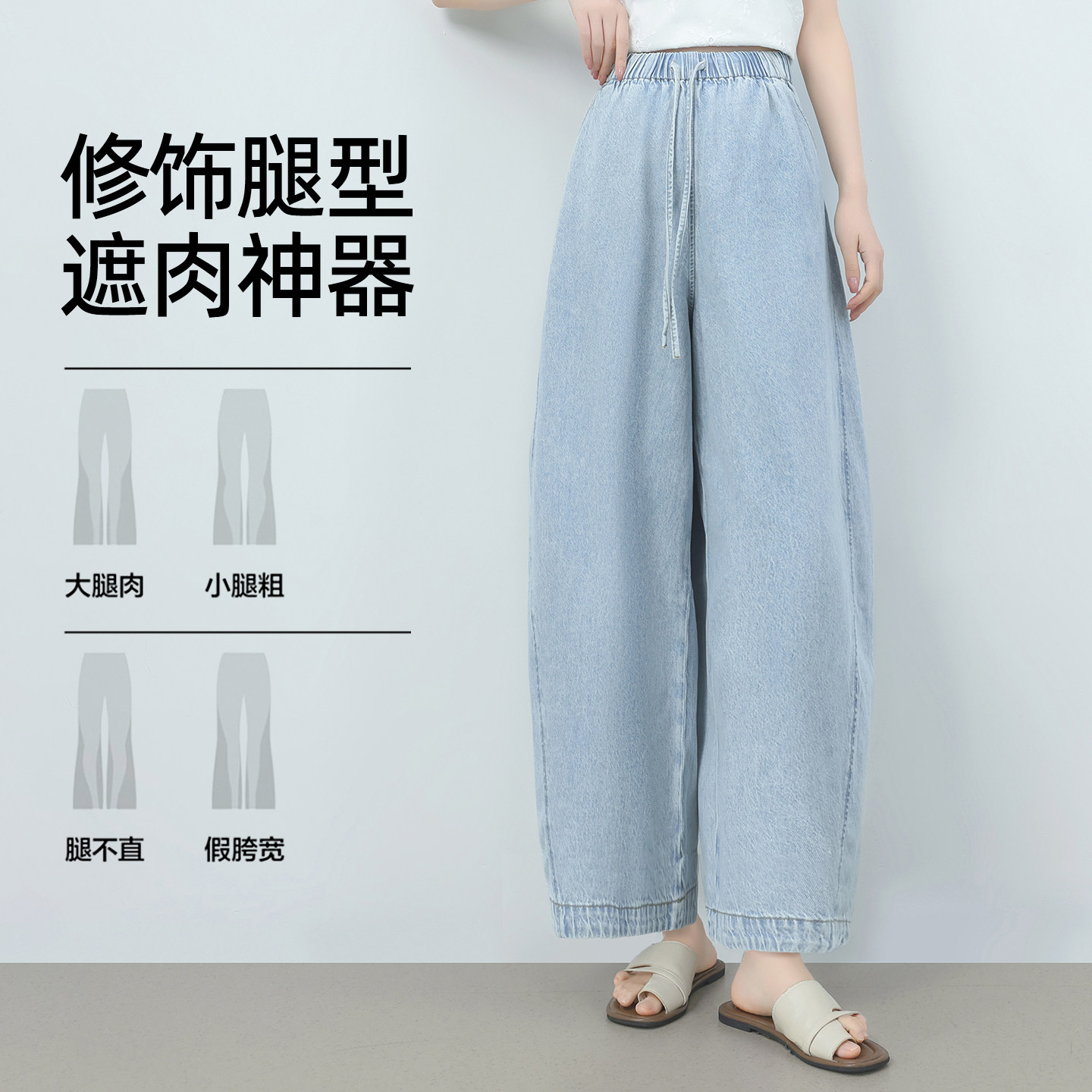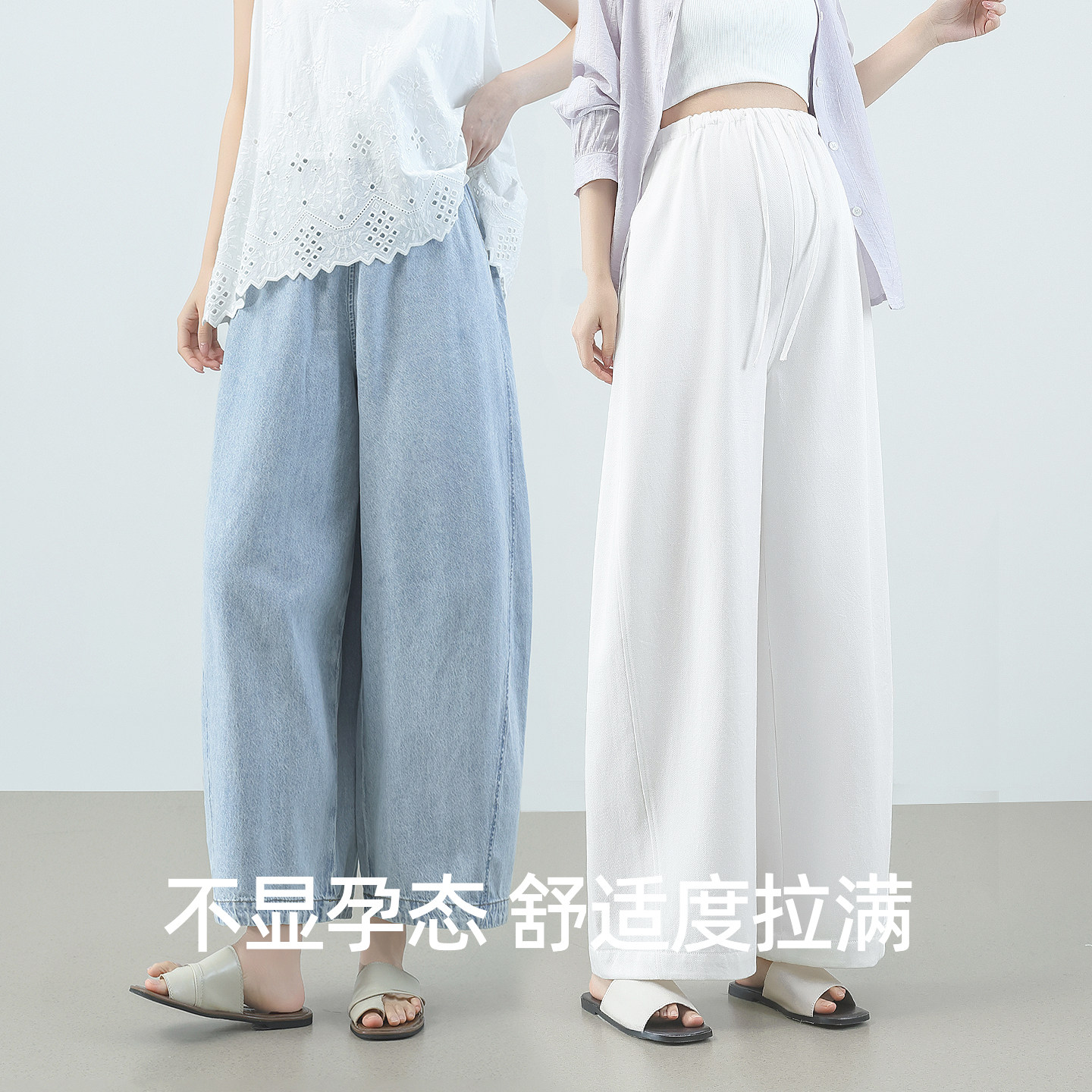 外穿宽松直筒阔腿无托腹九分弯刀裤 薄款 夏季 费雪莱赛尔孕妇牛仔裤