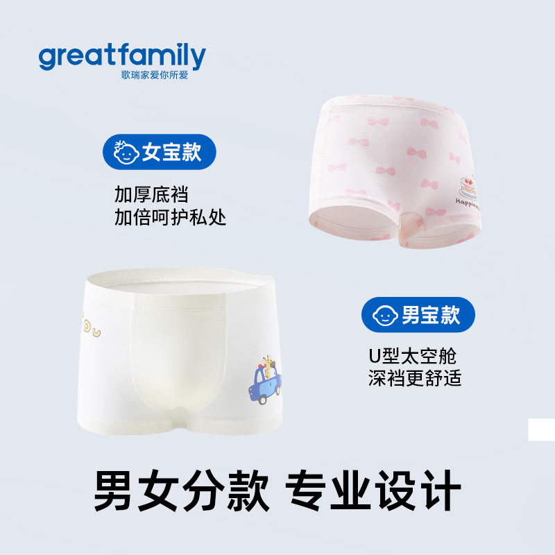 3条装 歌瑞家男女童抑菌内裤 短裤 居家舒适透气平角内裤 2026新款