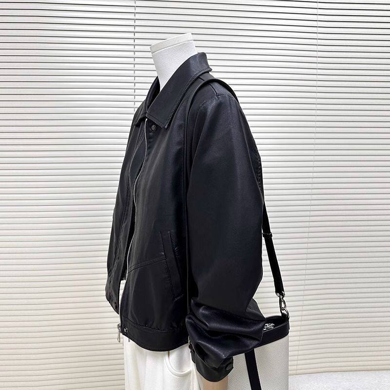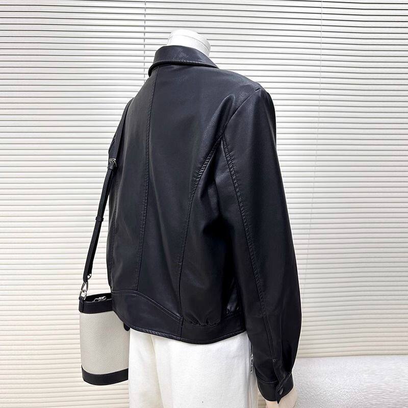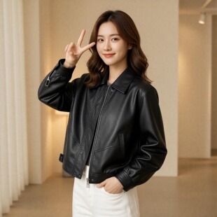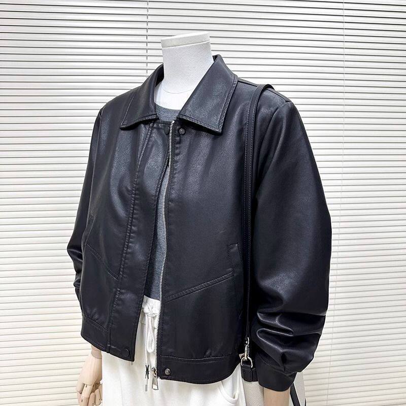 韩版 洋气小个子机车服夹克女 黑色高级感pu皮衣外套女复古港风时尚