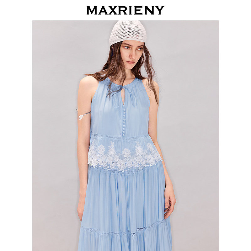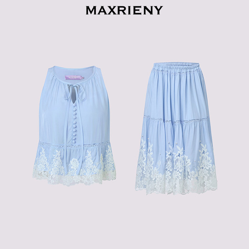 蕾丝拼接套装 MAXRIENY无袖 新款 半身裙两件套2026年夏季 醋酸衬衫