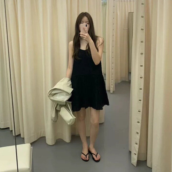 OUNCE吊带裙2026春季 V领抽绳收腰褶皱连衣裙可外穿 新韩国叠搭推荐