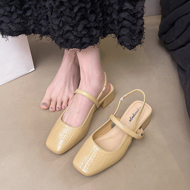 一字带包头凉鞋 复古风方头后空粗跟单鞋 淑女气质方头中跟玛丽珍鞋