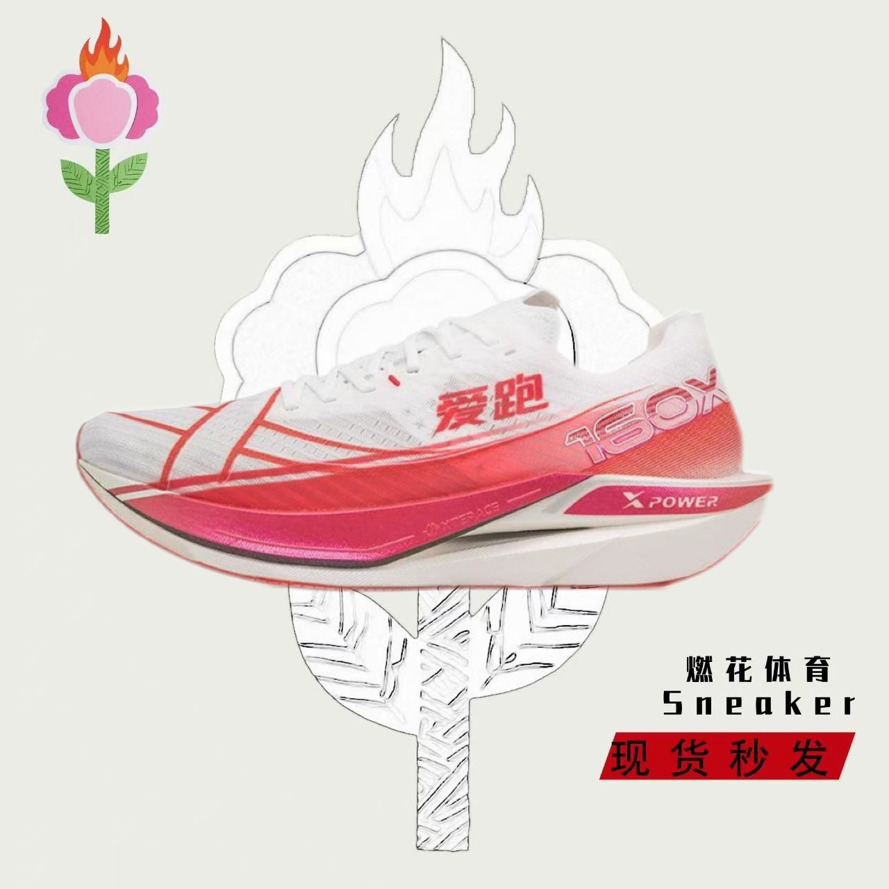 高能回弹超轻跑鞋 燃花体育特步160X6.0马拉松竞速跑鞋 碳板跑步鞋