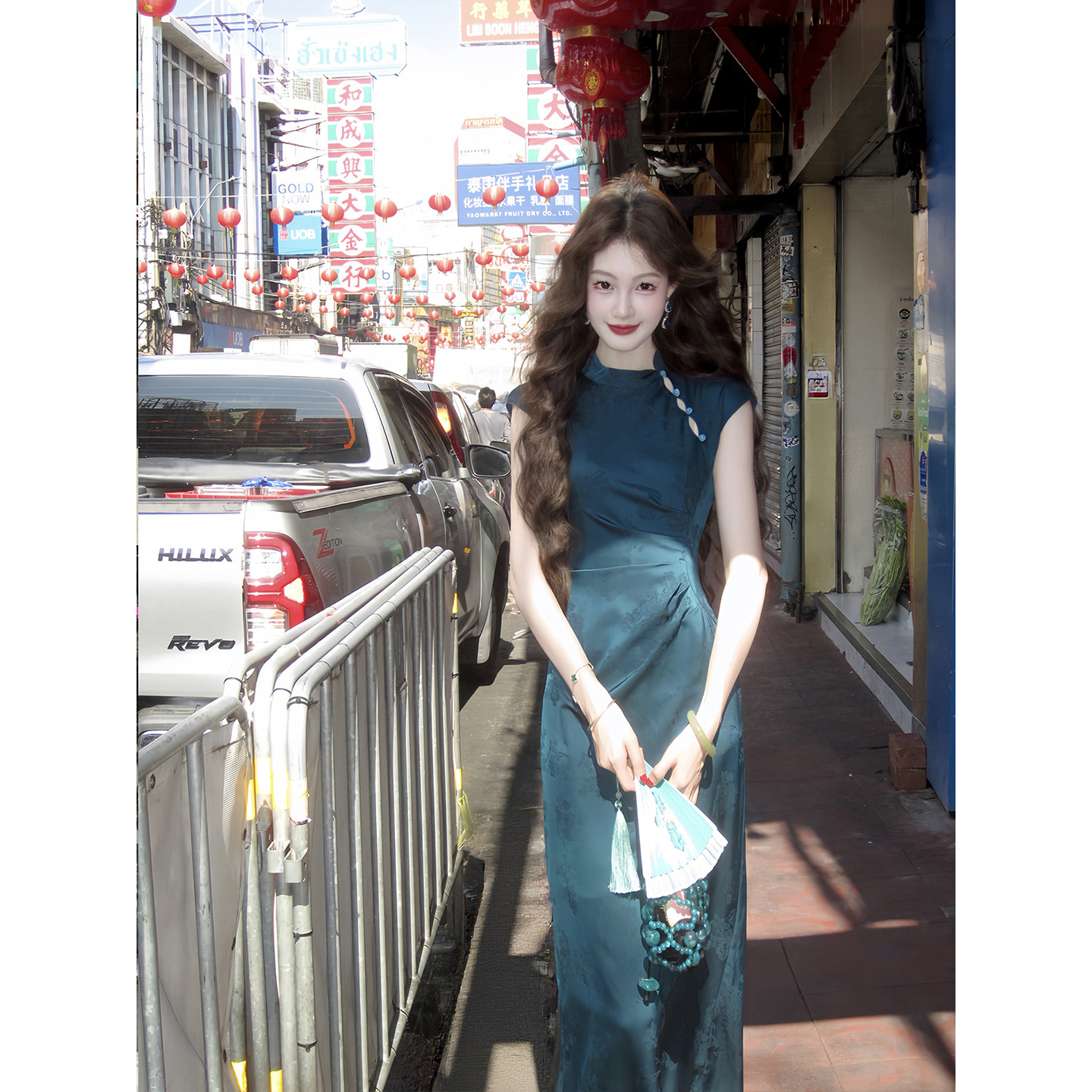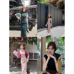 两色镂空设计改良旗袍显瘦连衣裙女 新中式 吃绿色菜 桃夭.青黛