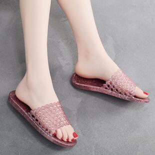 一字拖女防护鞋 夏季 女居家防滑不臭耐磨洗澡凉拖鞋 水晶拖鞋 新款
