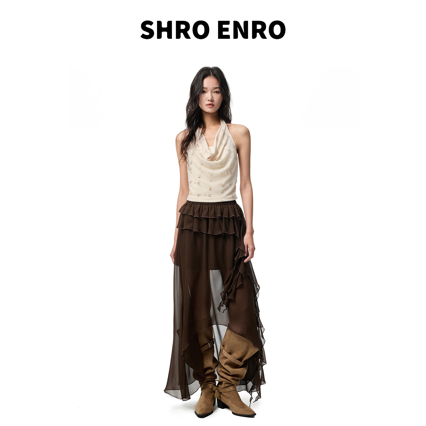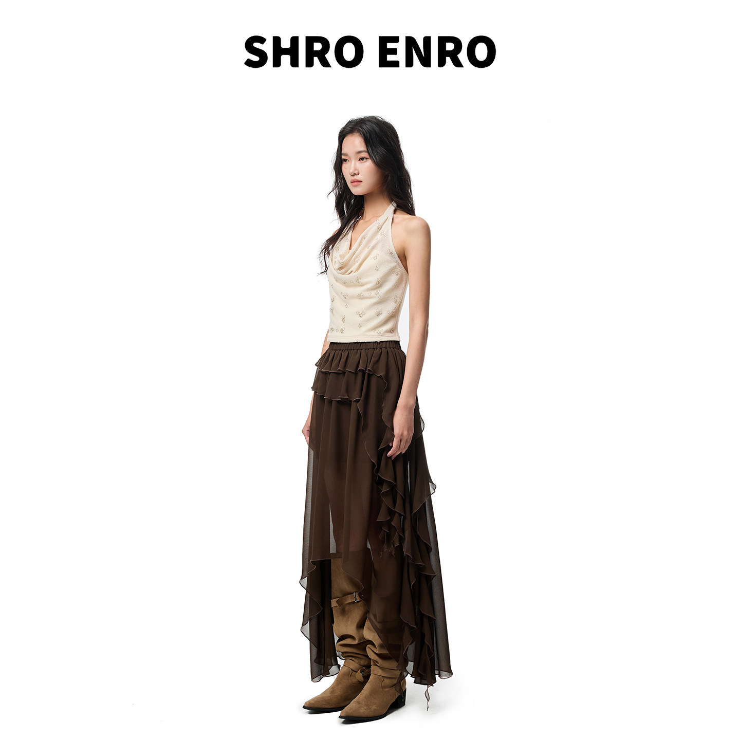 新款 2026春季 甜酷设计氛围感波西米亚少女风蛋糕长半裙 ENRO SHRO
