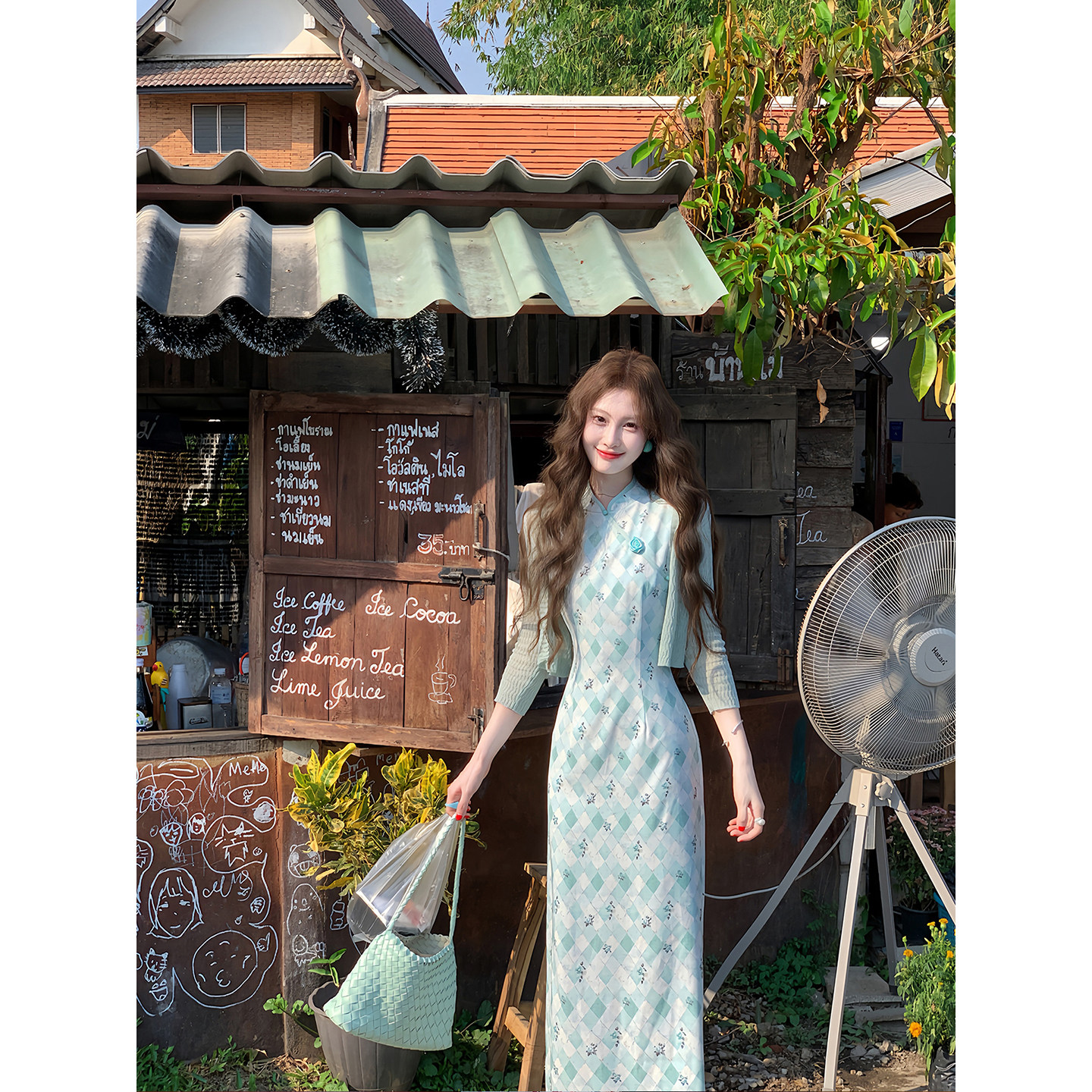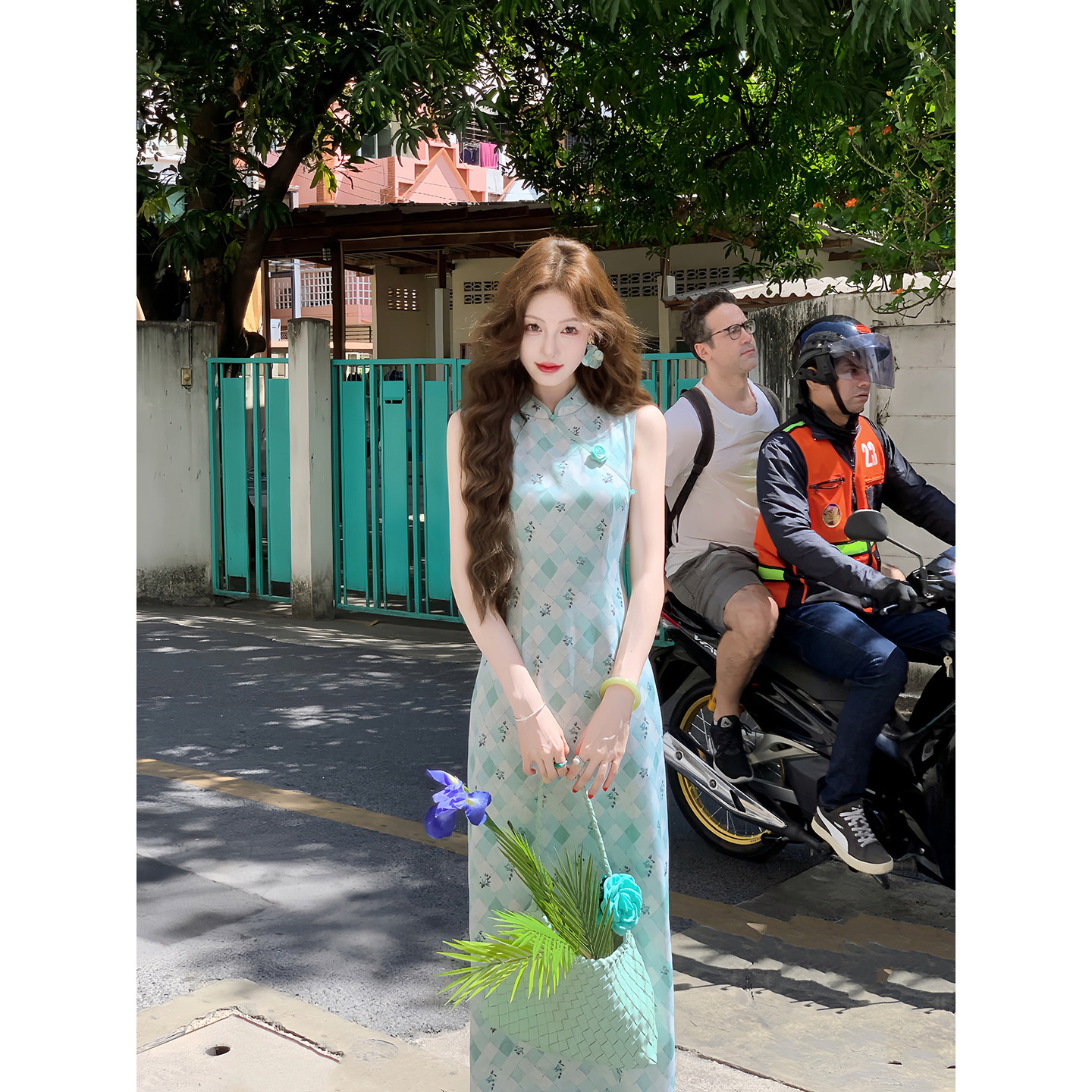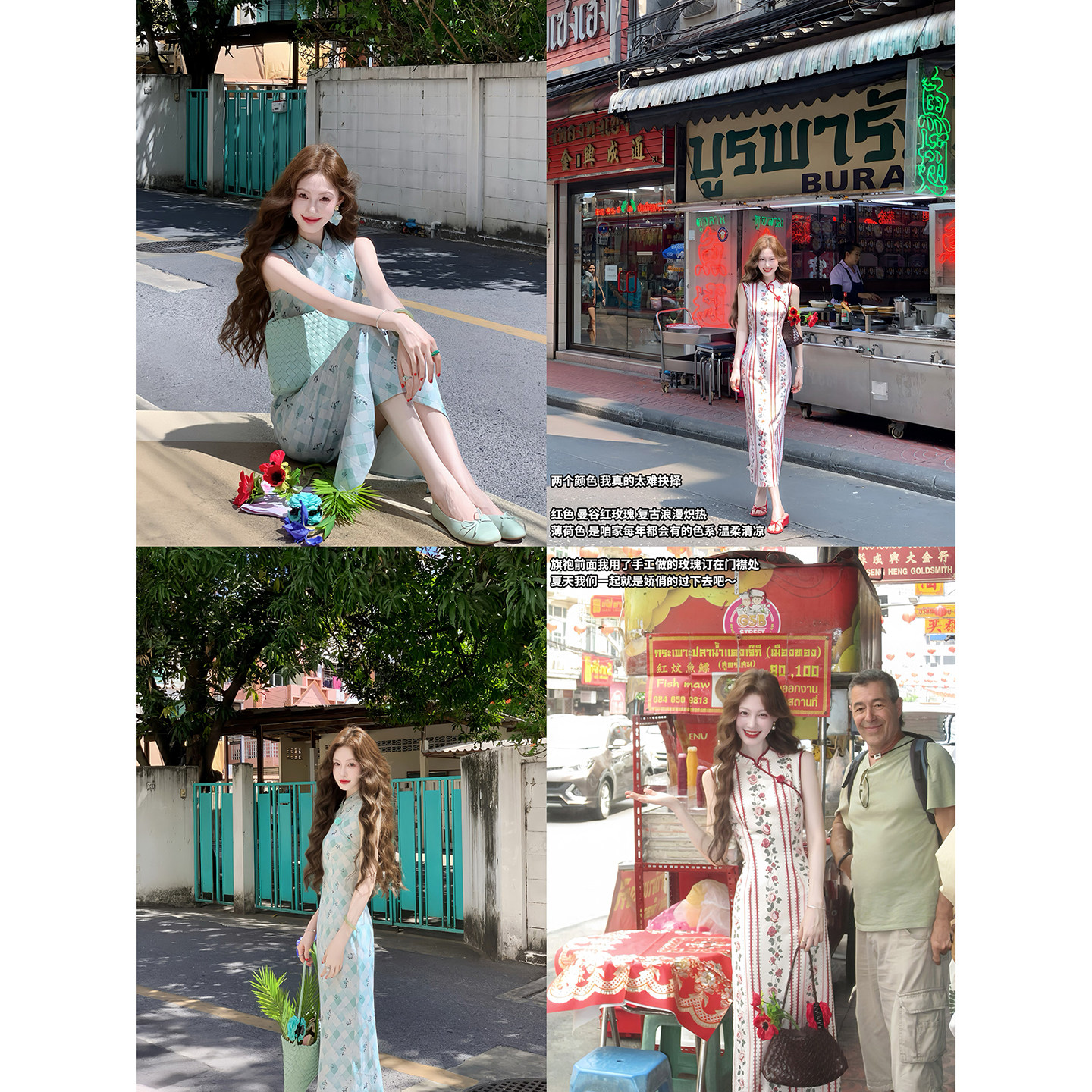 改良旗袍复古无袖 吃绿色菜 新中式 手工门襟 连衣裙女 南洋玫瑰