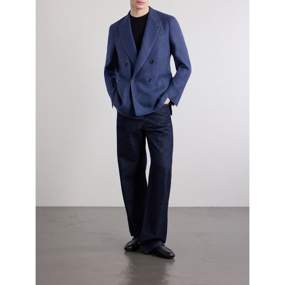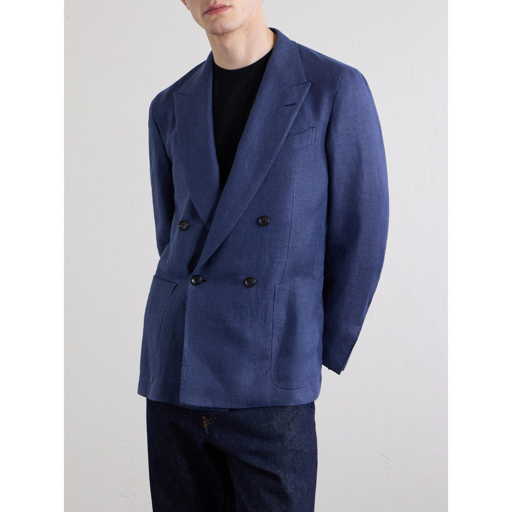 男士 杰尼亚 双排扣亚麻 羊毛真丝混纺西装 10JBN 潮奢 外套 zegna