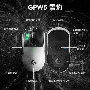 新品 罗技GPW5雪豹无线鼠标狗屁王五代电竞游戏8k电磁微动充电拆包