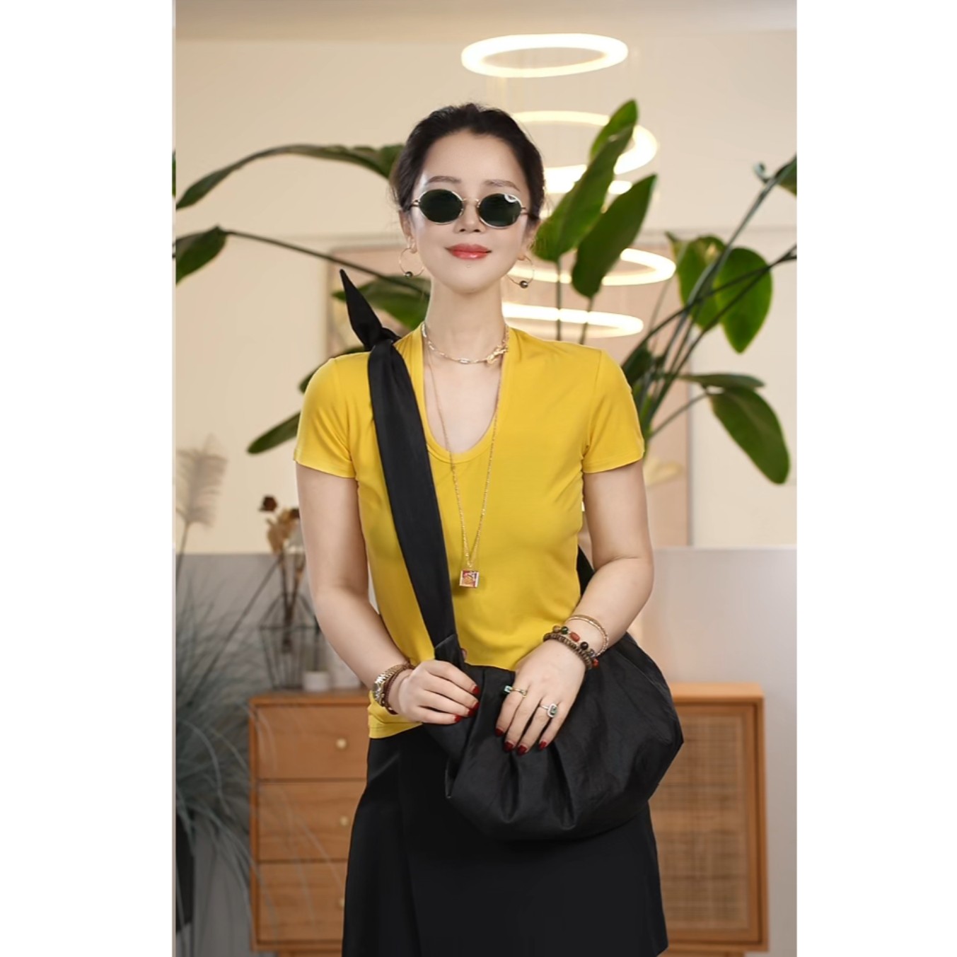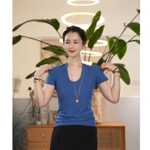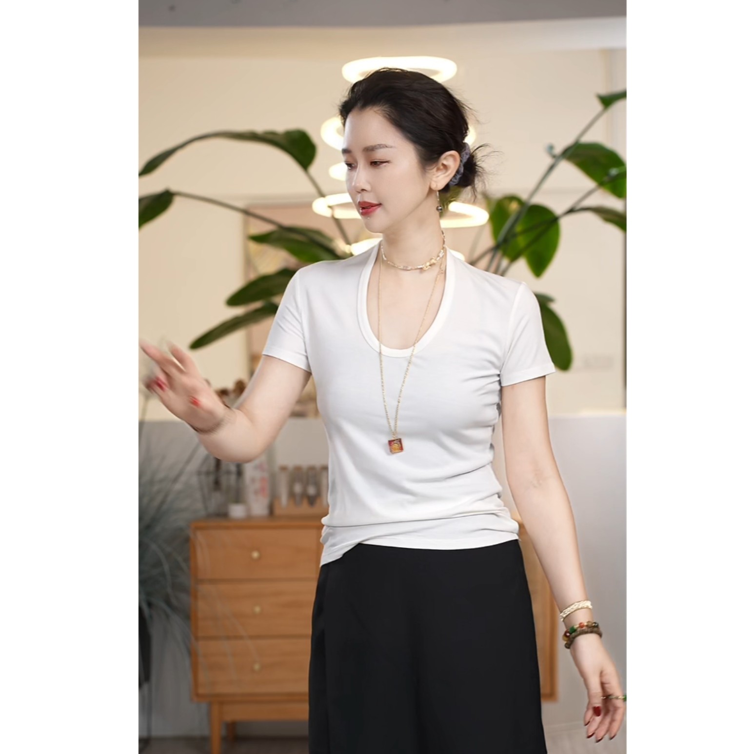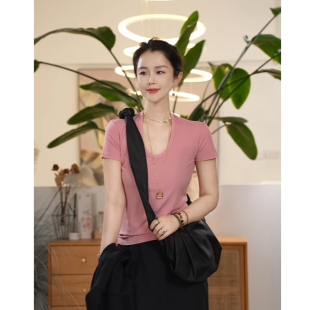 上衣纯色百搭休闲T恤慵懒时尚 U领短袖 气质经典 叭哒不惑