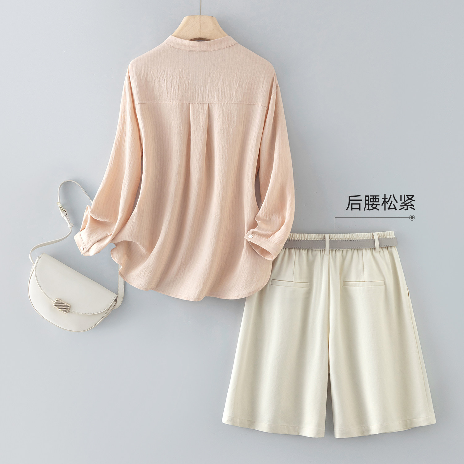 商品标签:夏季天丝长裤两件套套装衬衫女款