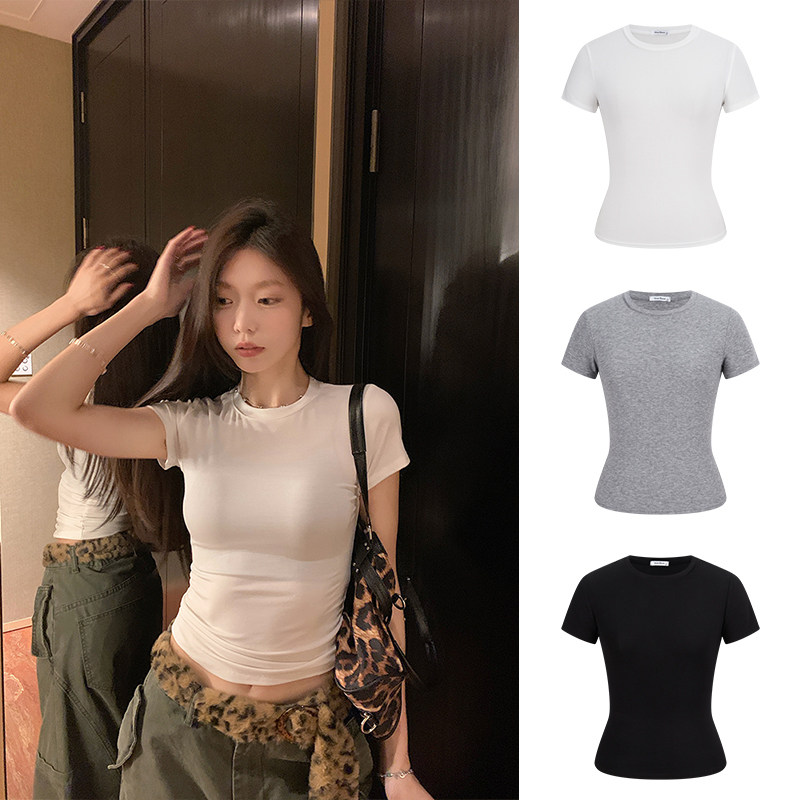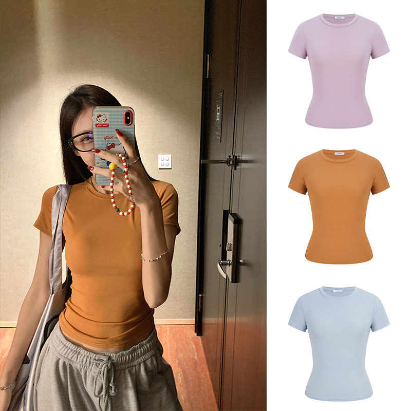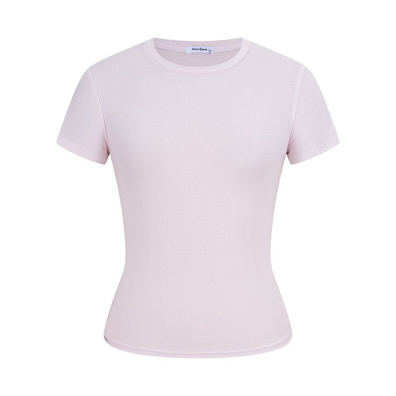 显瘦圆领上衣 修身 MosesQueen魔西女王粉色莱赛尔天丝短袖 t恤夏季