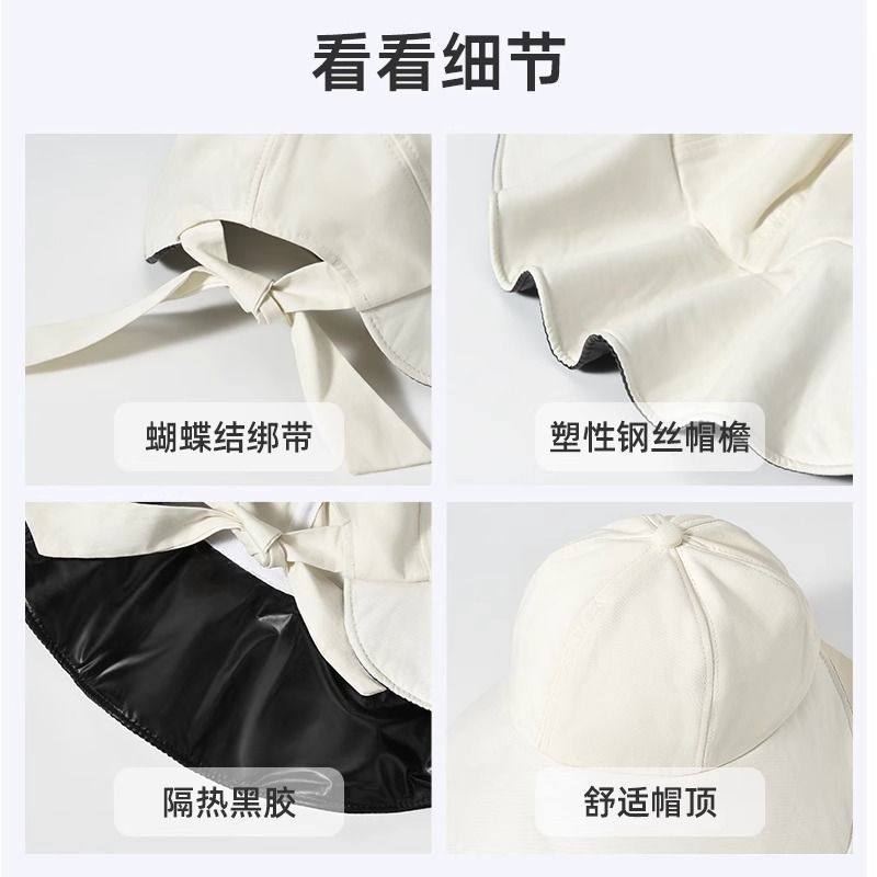 蝴蝶结渔夫帽黑胶防晒帽女士春夏季 防紫外线遮脸大帽檐遮阳帽子女