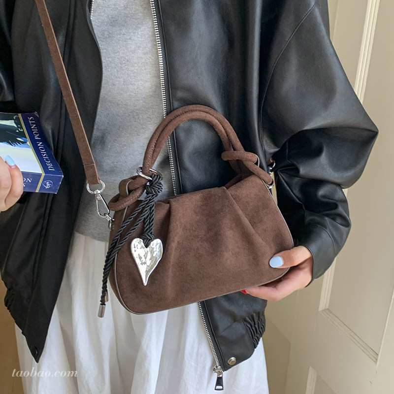 精致复古小众麂皮绒包包女2025新款 休闲百搭斜挎包超火手提小拎包
