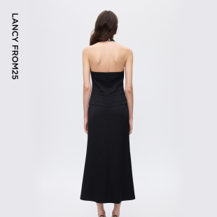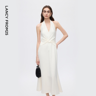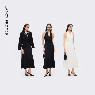 新款 朗姿25挂脖气质轻礼服鱼尾v领连衣裙高级感冬季 焦点系列