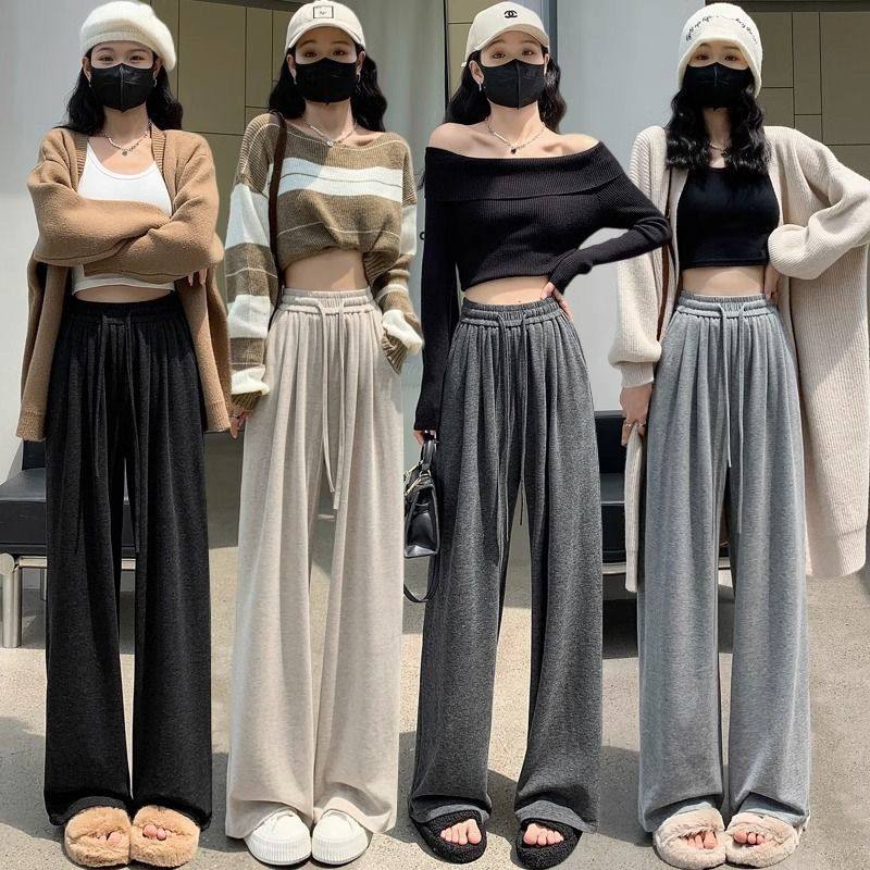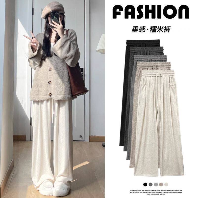 高腰垂感小个子直筒休闲软糯阔腿裤 春秋季 子女2025新款 灰色糯米裤