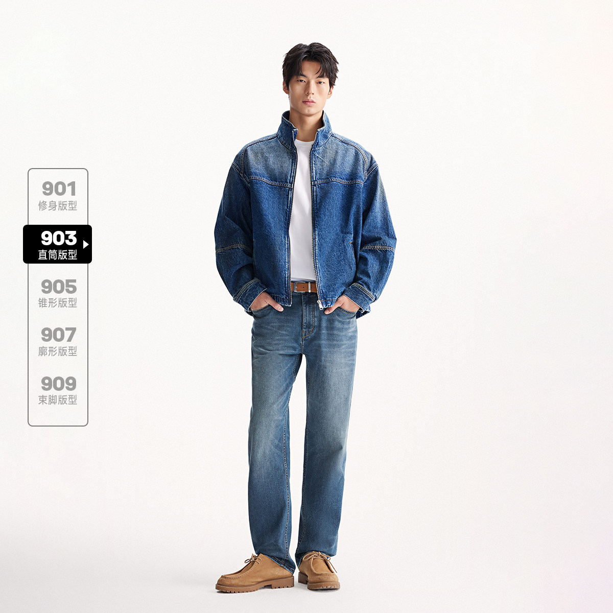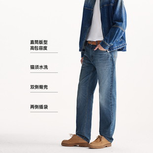 休闲直筒简约百搭猫须水洗裤 冬冬25新款 子 牛仔裤 杰克琼斯男装