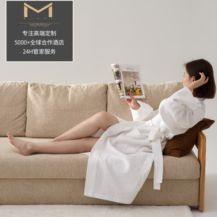 MINKE酒店民宿宾馆纯棉割绒华夫格浴袍SPA美容院白色通码 全棉浴服