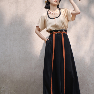 齐腰九片裙百搭显瘦亲肤新品 短衫 女鸡心领半袖 瞳莞汉服椒花颂夏季