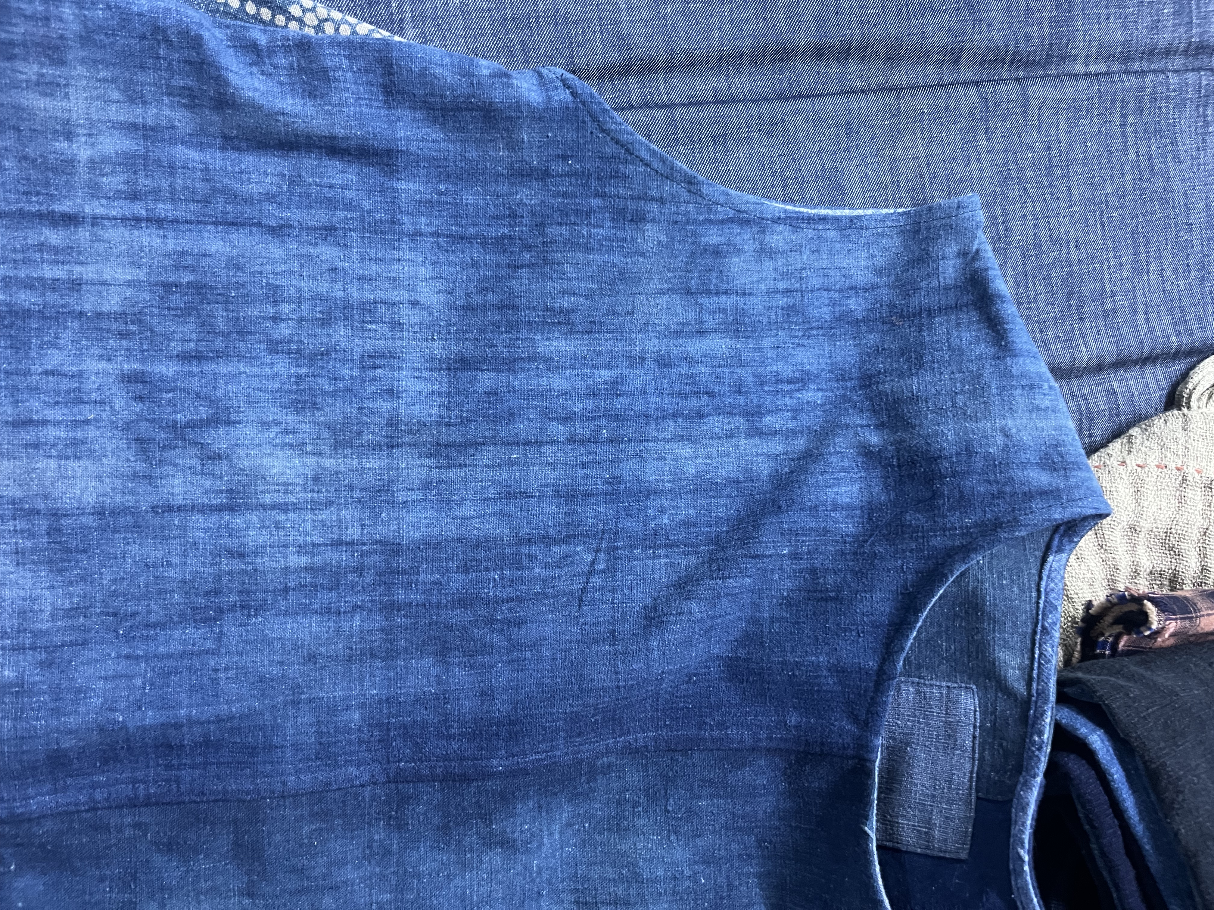 沉香布衣草堂 自制老布蓝染吊带短背心衣斑驳随拼补丁C25u07134