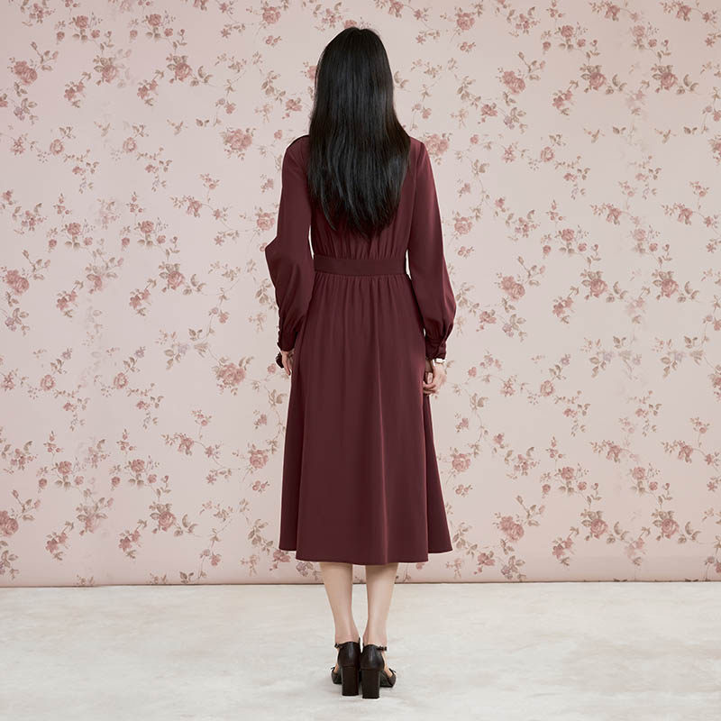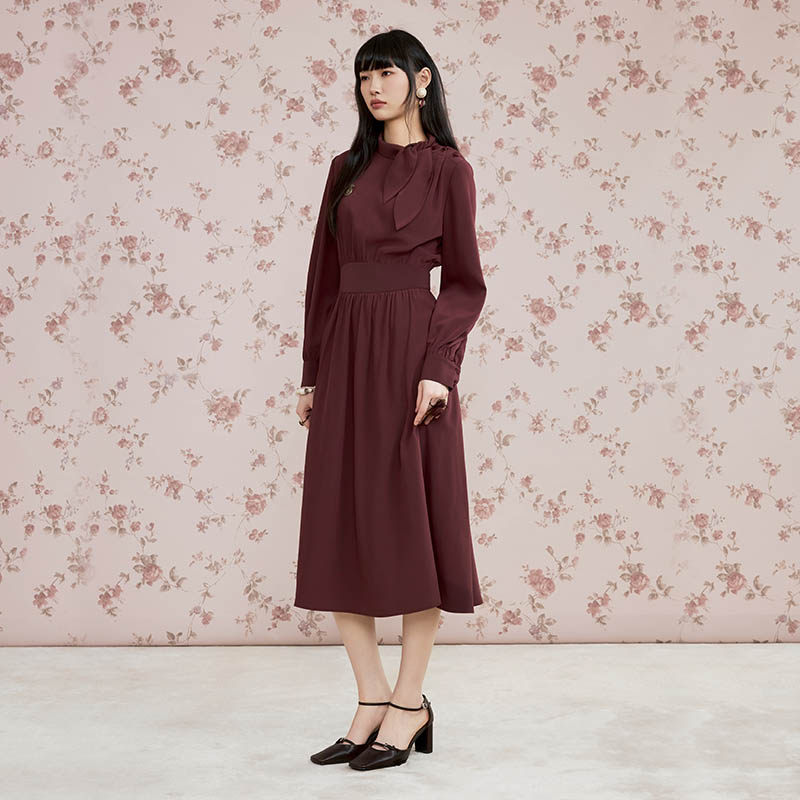 复古酒红色长袖 新款 迪哈利2026春季 连衣裙DH261J91237T HARRY