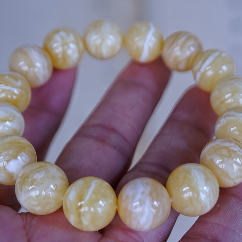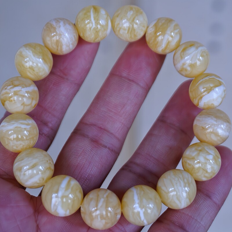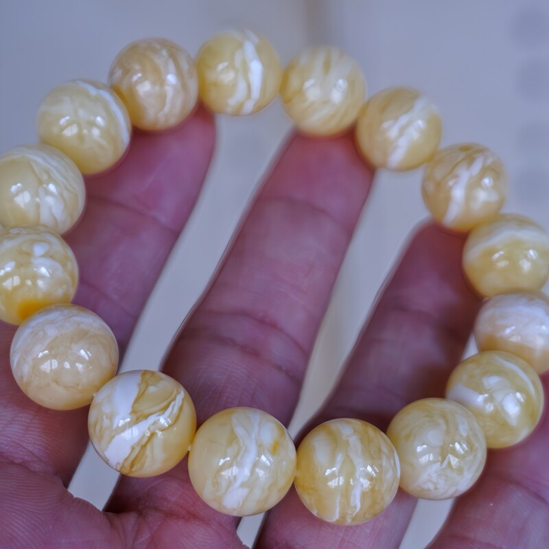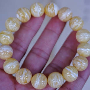 正品 天然俄料精品虎皮纹瓷白花蜡蜜蜡13mm手串文玩收藏珠宝饰品