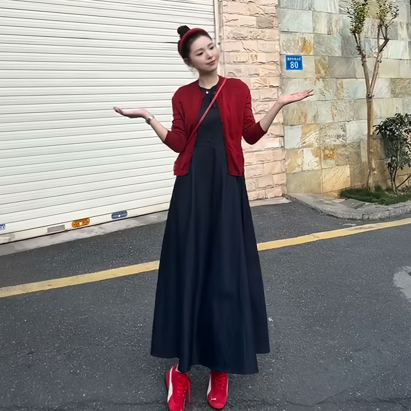 两件套装 安妮不火 微胖大码 女2025秋冬新款 甜酷风呢子连衣裙套装