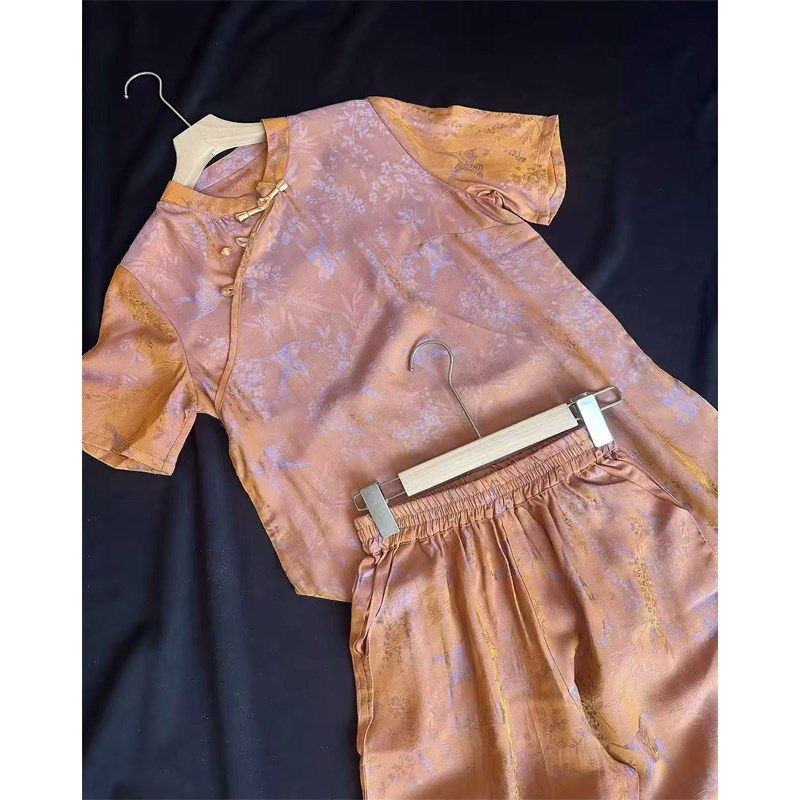 裤 新中式 阔腿优雅气质套装 禅意提花时C尚改良短袖 减龄两件套夏季