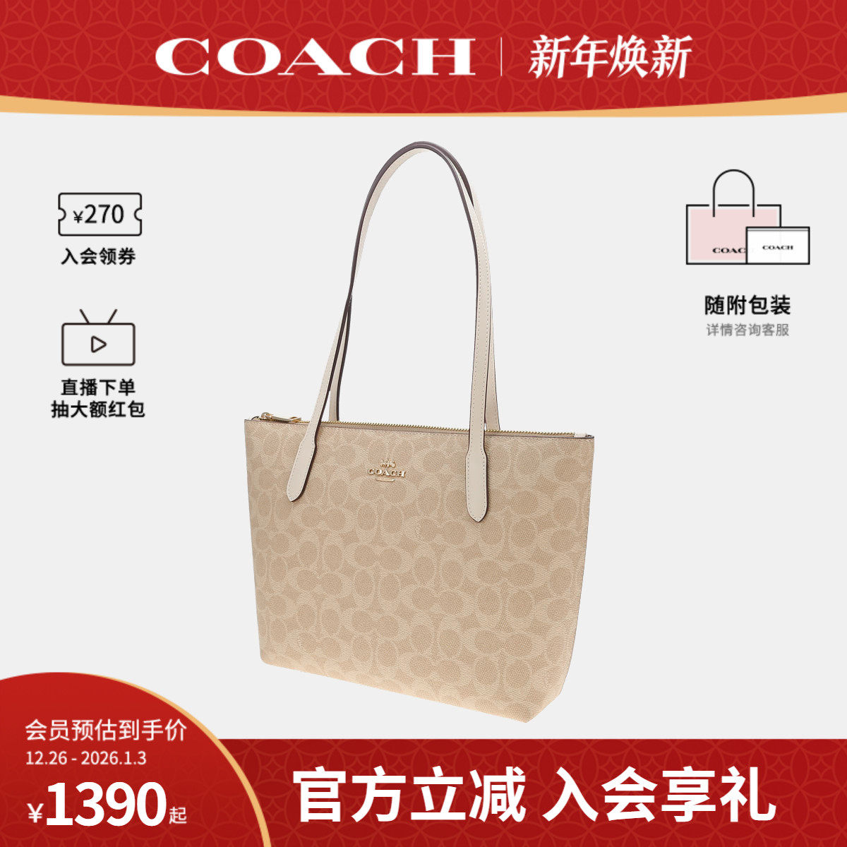 女士PVC单肩手提包ZIP老花托特包CBT18 奥莱款 COACH 蔻驰官方