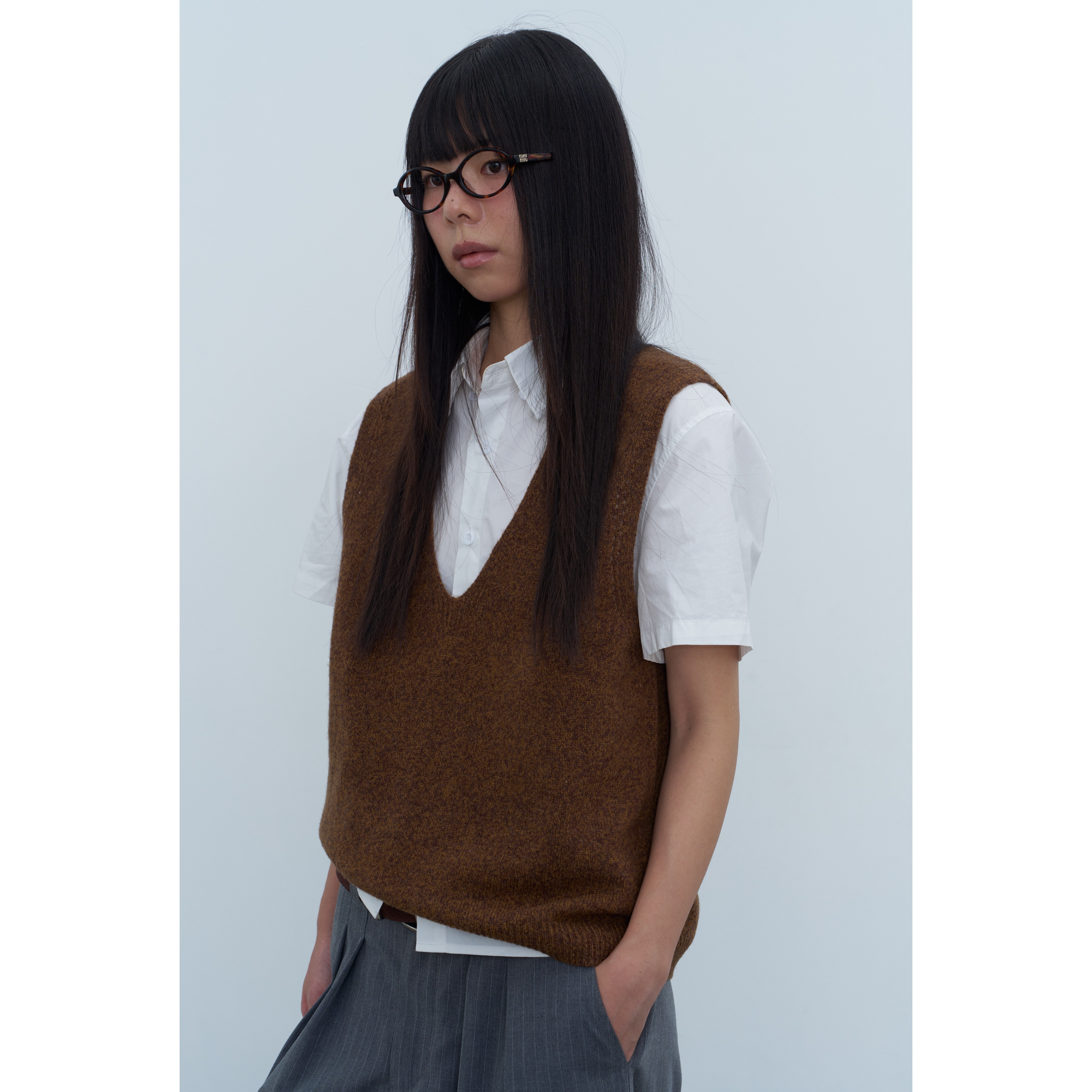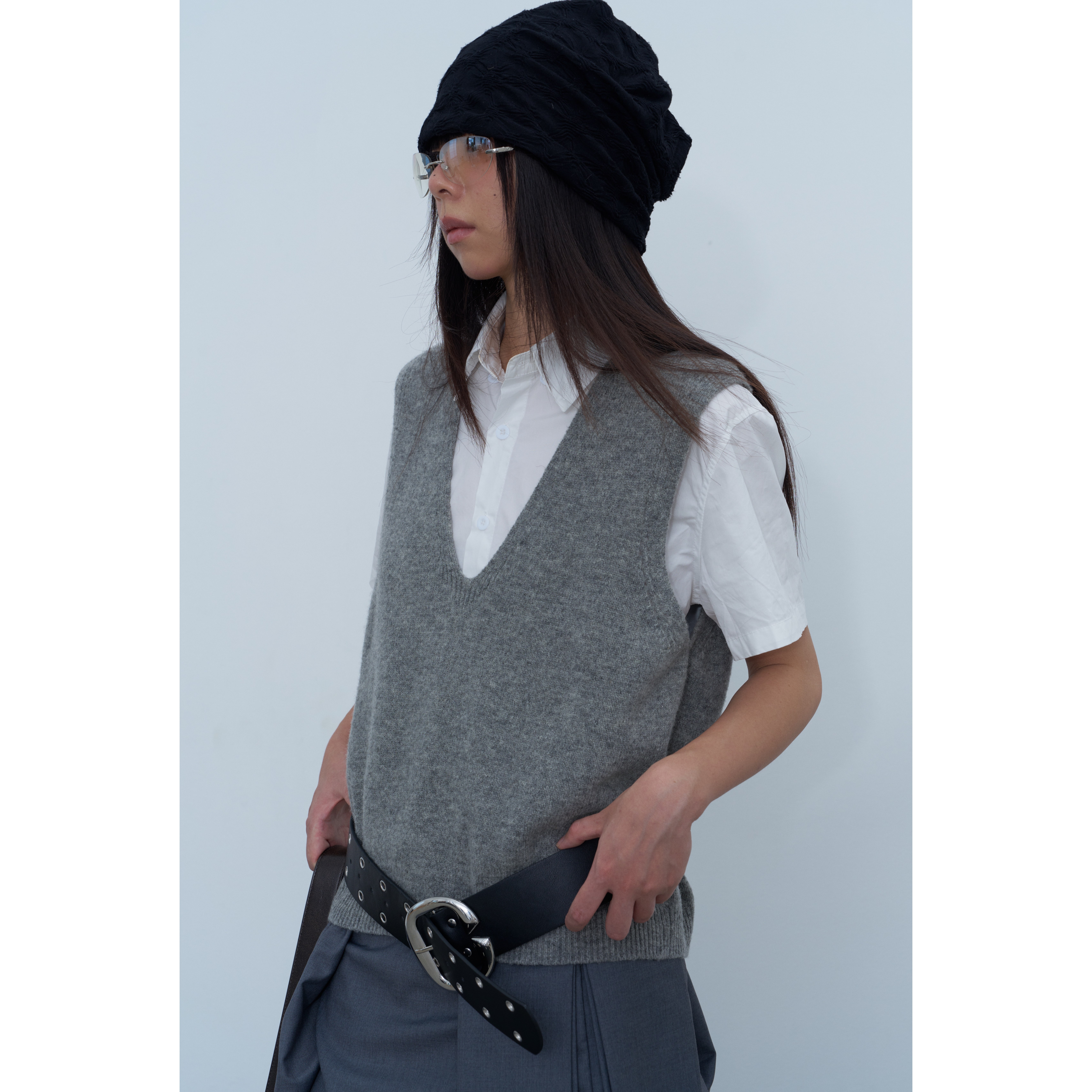 绵羊毛v领马甲叠穿针织背心纯色坎肩女 新款 Rebornique 2025秋季