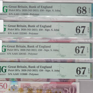 50镑 查尔斯 全新UNC PMG 欧洲钱币 塑料钞 英国5 英女王
