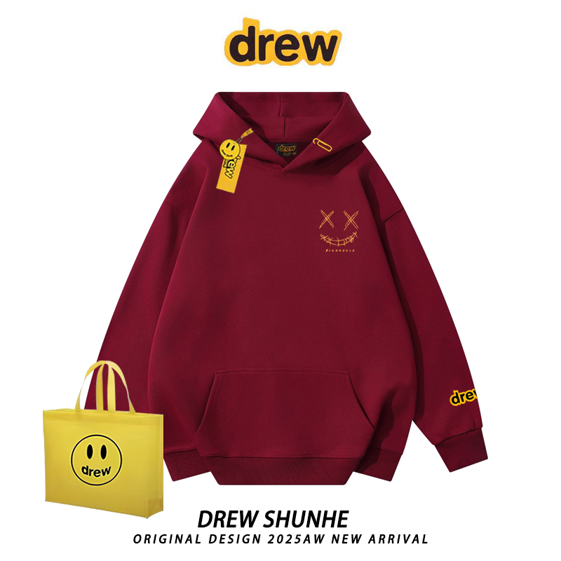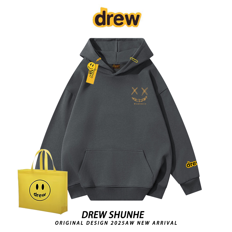 drew潮牌笑脸字母连帽卫衣美式 情侣加绒上衣 高街男女宽松纯棉帽衫