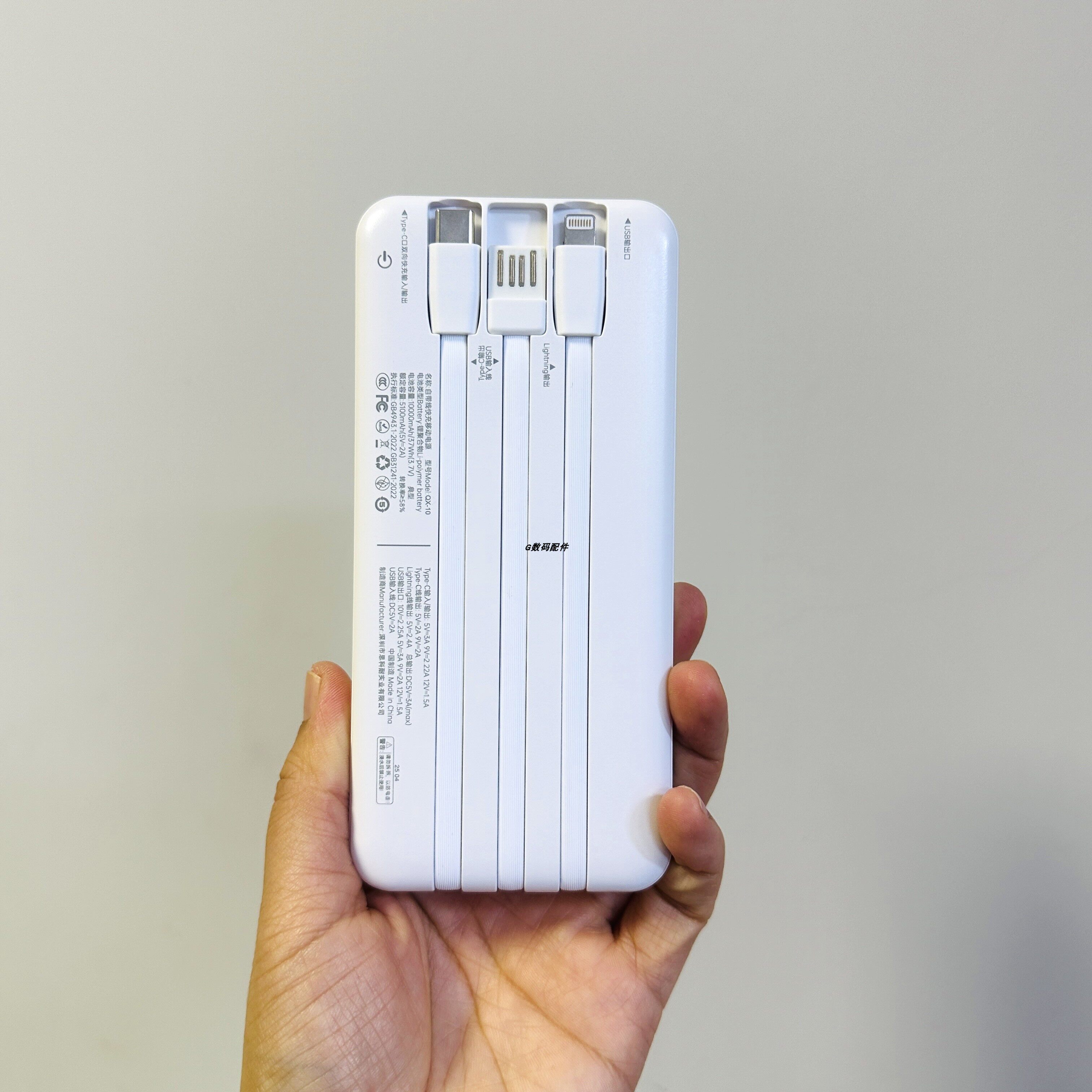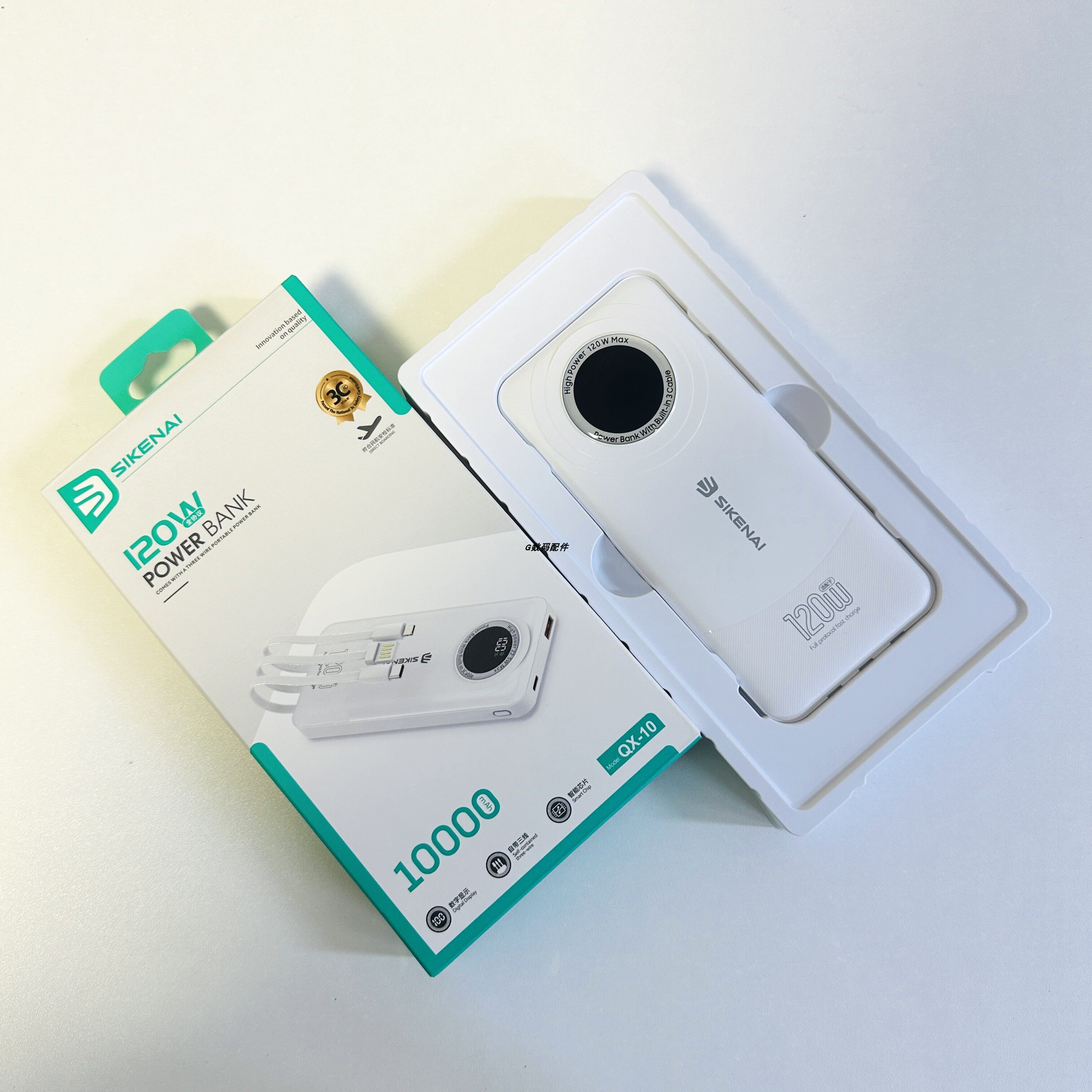 思科耐qx10充电宝自带线数显适用于120w快充手机户外通用3c电源新