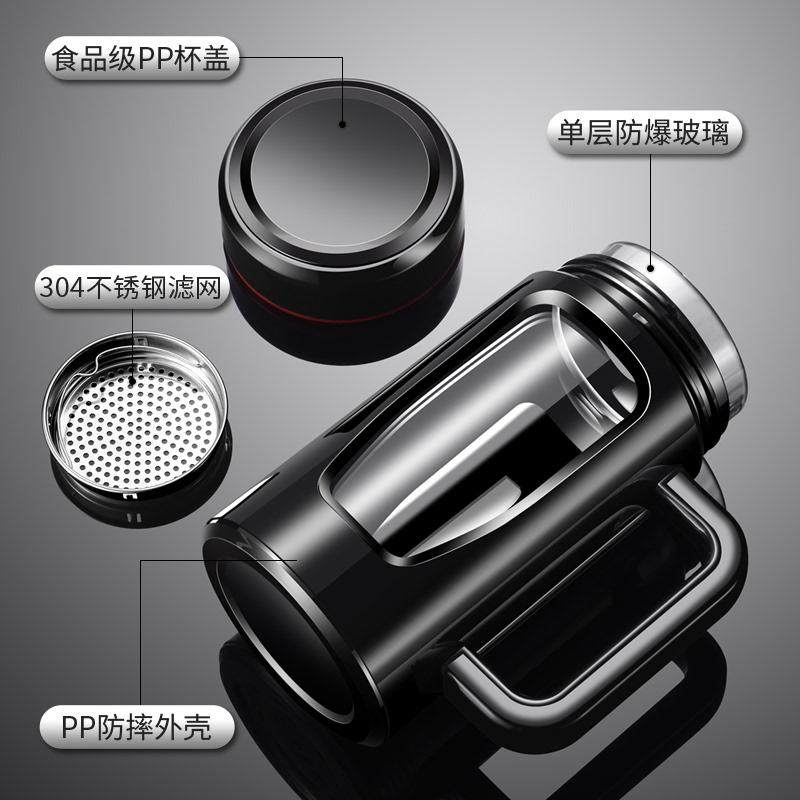 RI0T2023新款 防摔带把茶水分离杯 大容量玻璃茶杯个人男士