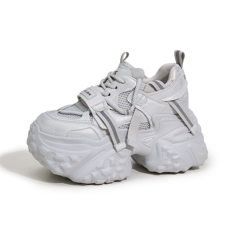 ZFCQ香港灰色厚底内增高老爹鞋 真皮2026春夏显脚小超高跟休闲 女款