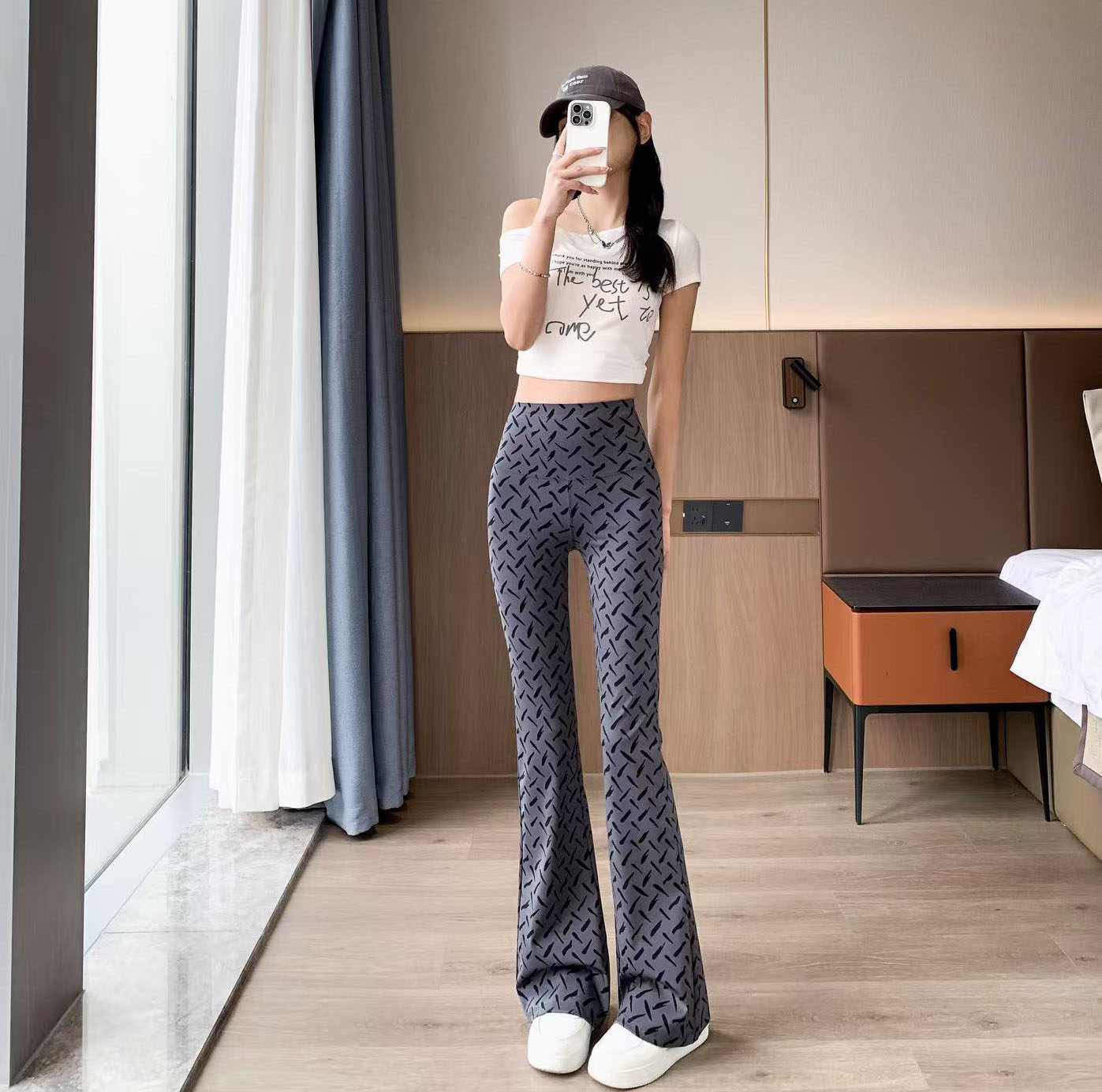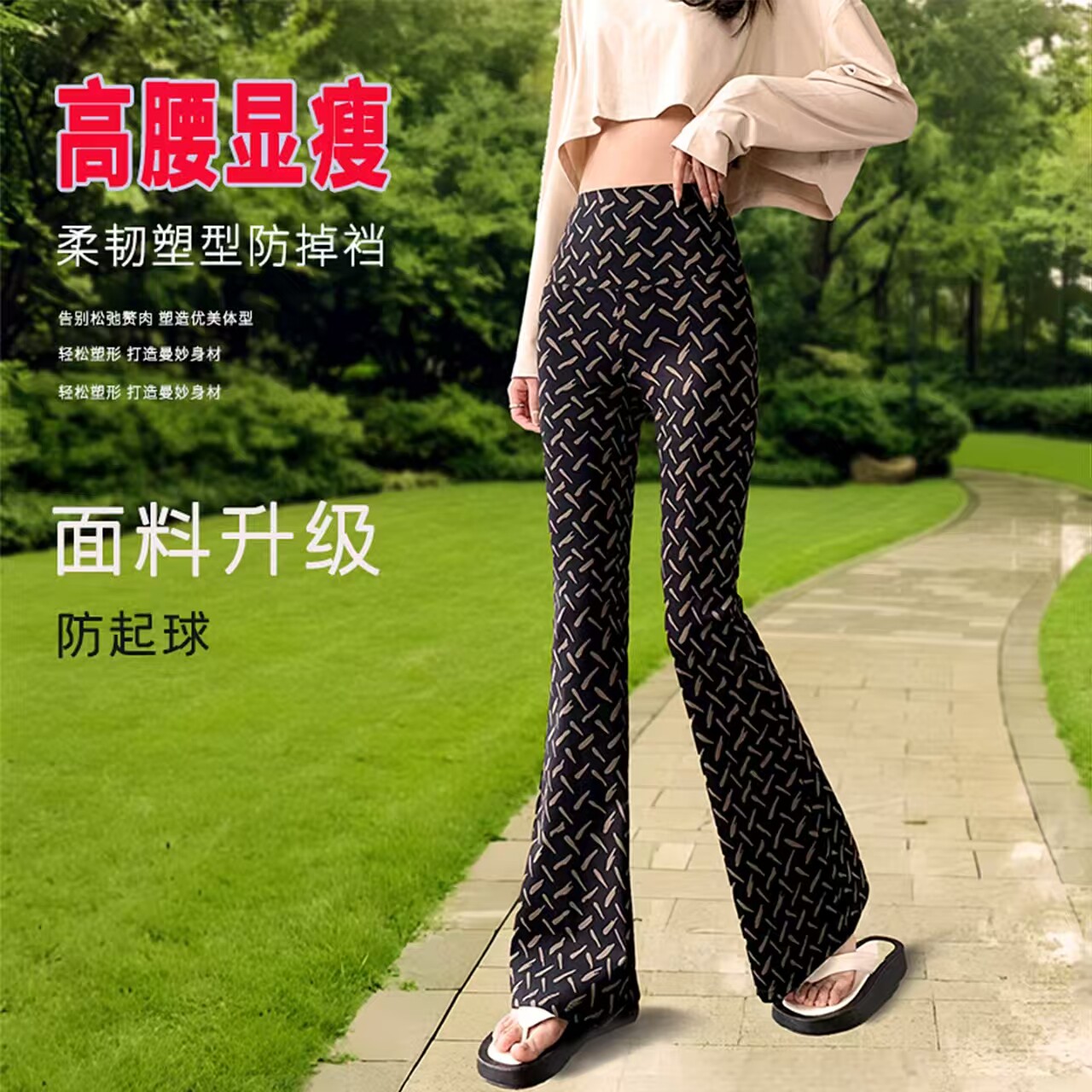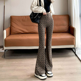 2026春秋新款 冰丝微喇叭高腰外穿弹力瑜伽休闲垂感印花瑜伽鲨鱼裤