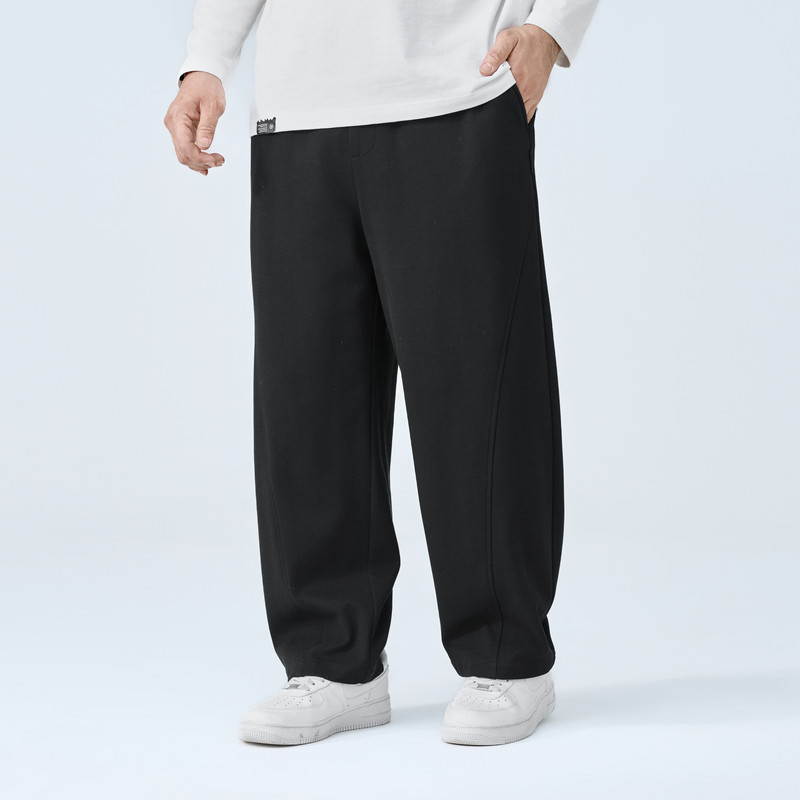 男士 秋季 300斤胖子长裤 男裤 潮 休闲裤 呢感弯刀裤 阔版 半墨大码 新款