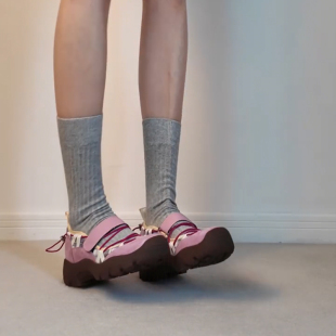 圆头单鞋 羊皮版 小个子厚底内增高7cm拼色魔术贴软底不累脚运动鞋